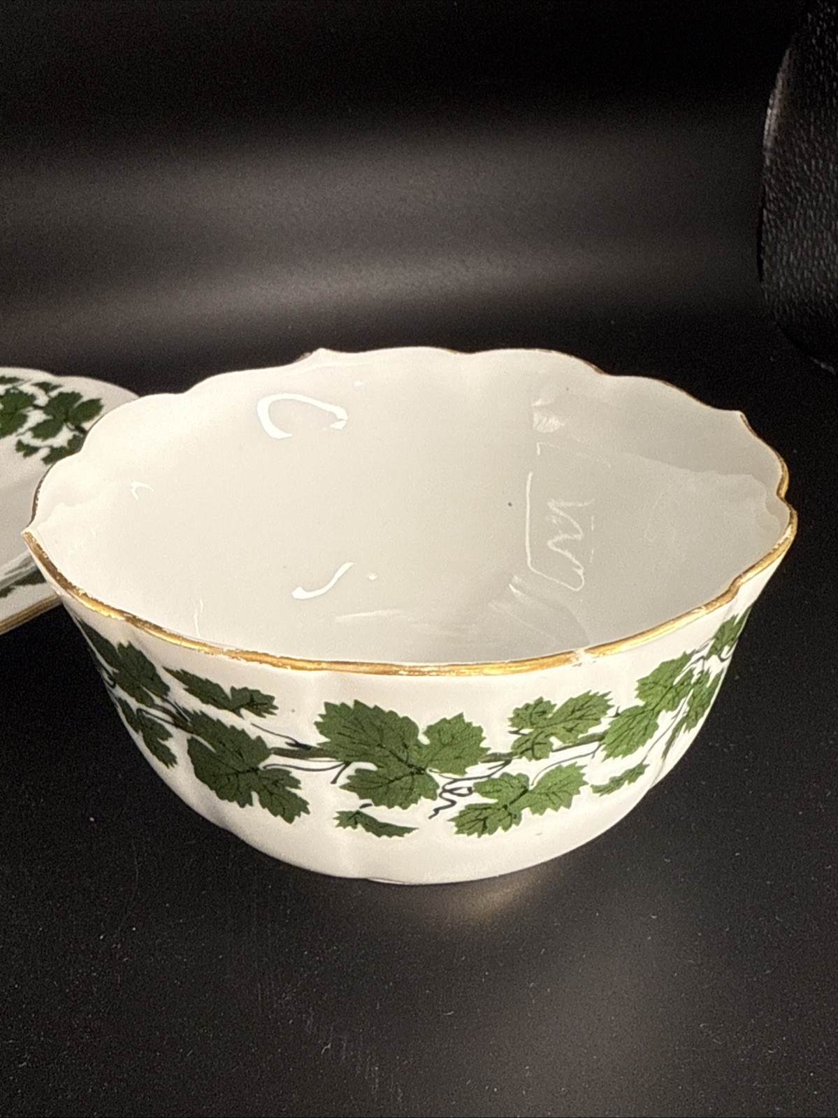 как выглядит Meissen Green Ivy Full Green Vine Scalloped Gold Trim Footed Teacup Saucer 1/9 фото