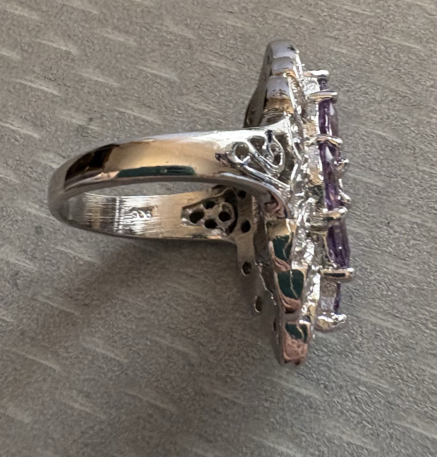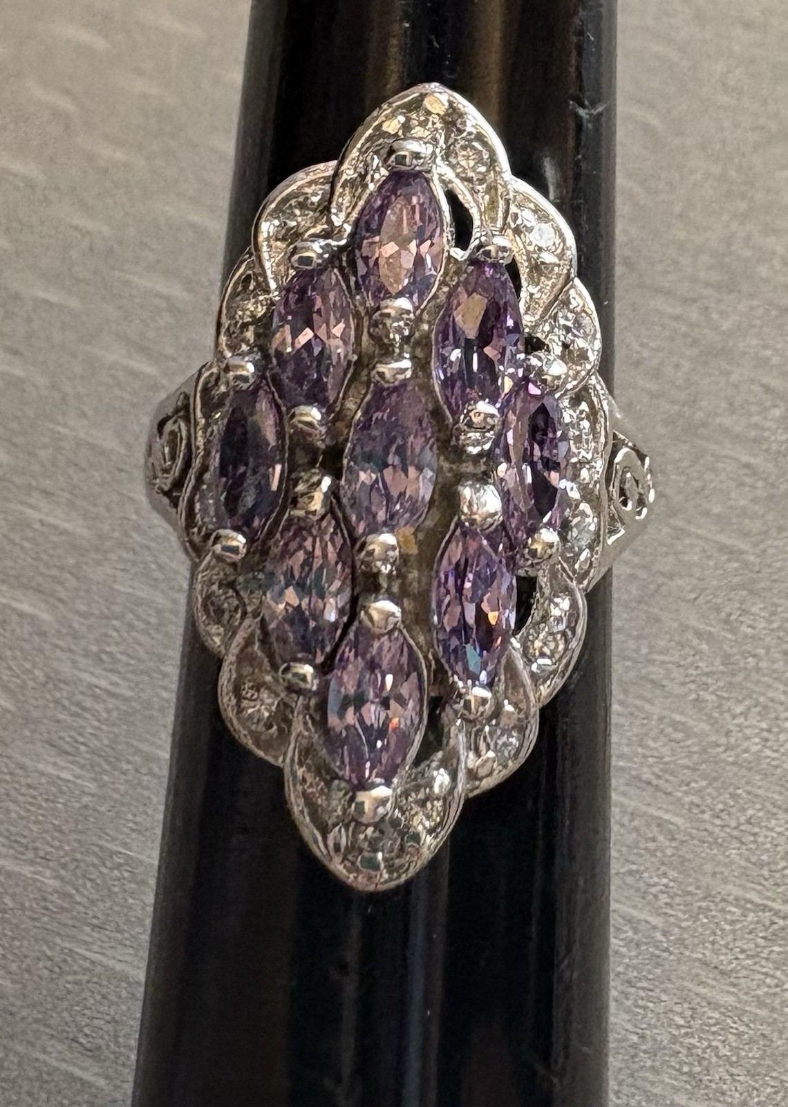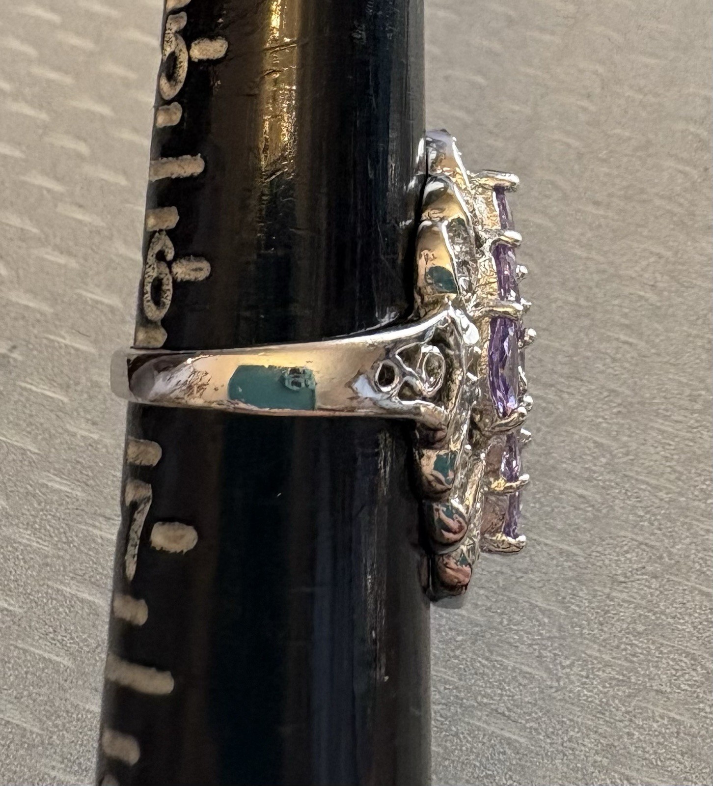 Vintage Sterling Silver Lavender Amethyst Marquise Gem Cluster Ring 925 size 6.5
