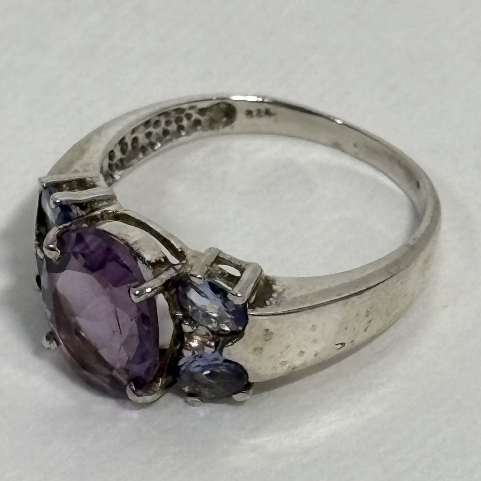 Sterling Silver 925 Multi Stone Ring Purple Blue Crystal Oval Sz 7