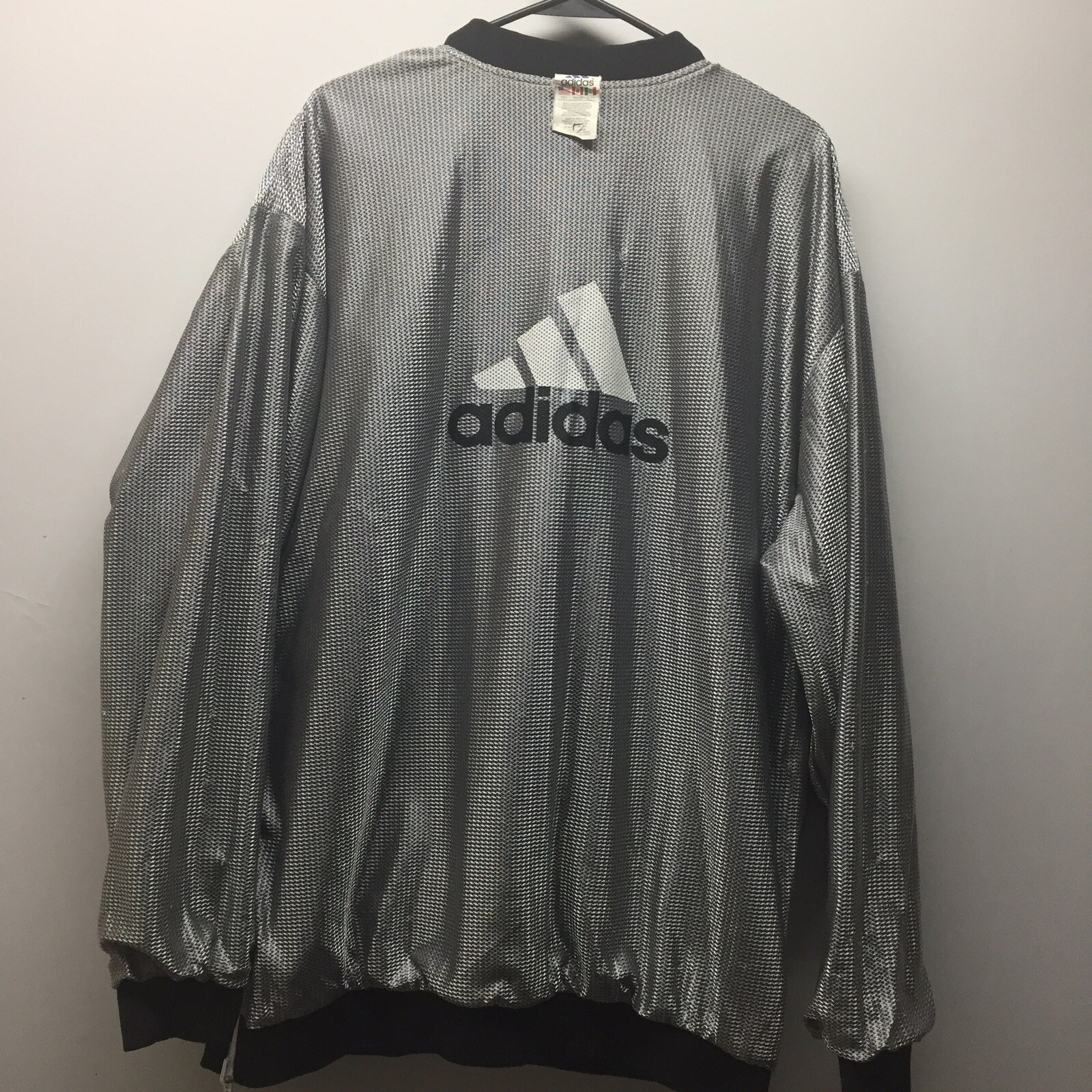 Vintage Reversible BIG LOGO ADIDAS Pullover Jacket Silver/Navy Mens Size LARGE