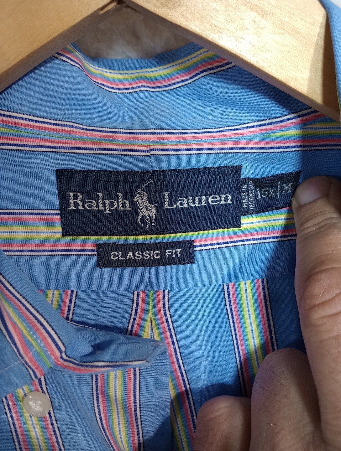 Ralph Lauren Classic Fit Long Sleeve Button-up Shirt Striped Pink Pony Sz M 15.5