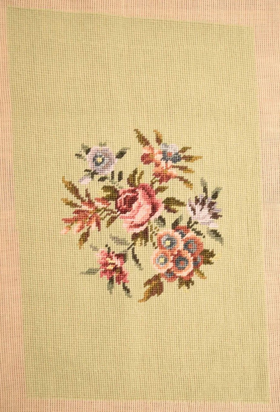 как выглядит 2 Vintage Completed Floral Center Needlepoint Canvas 17" X 11" and 21" X 16" фото
