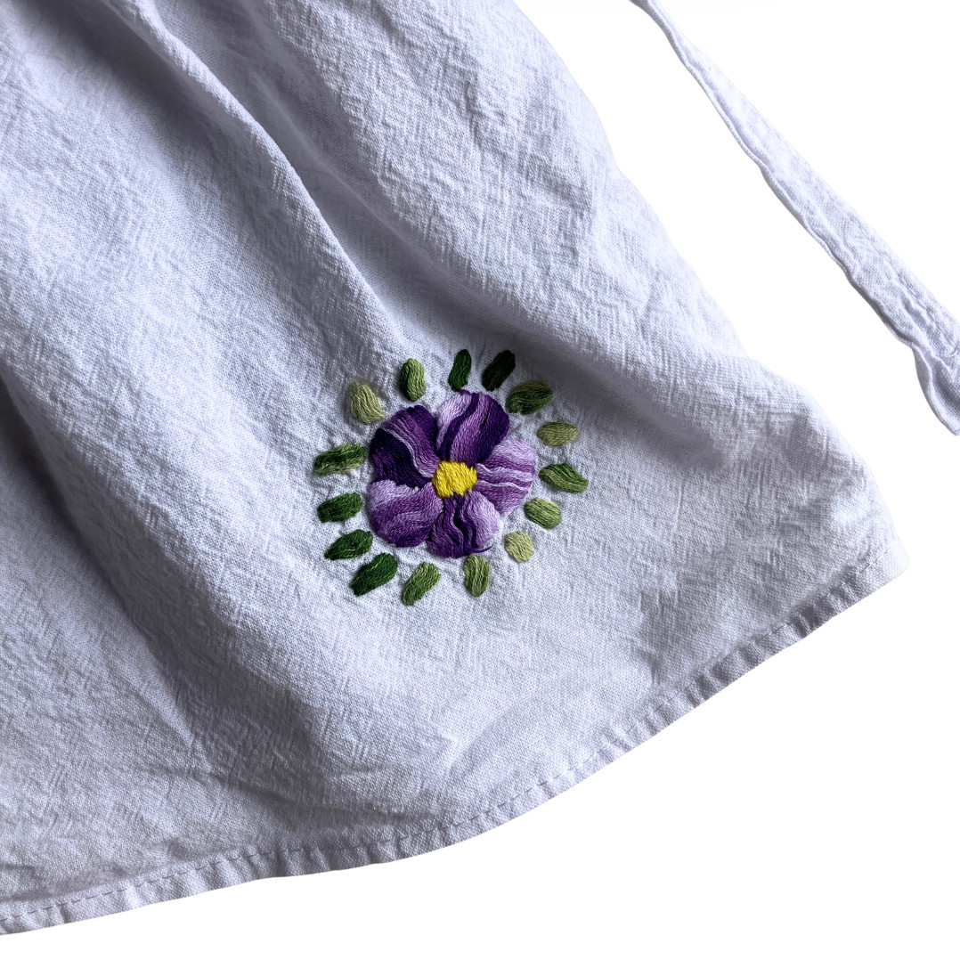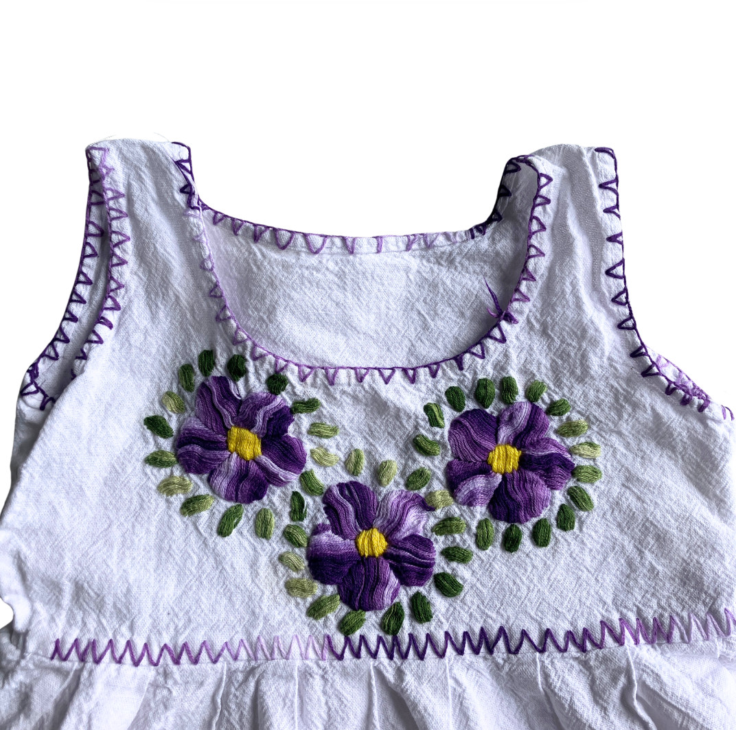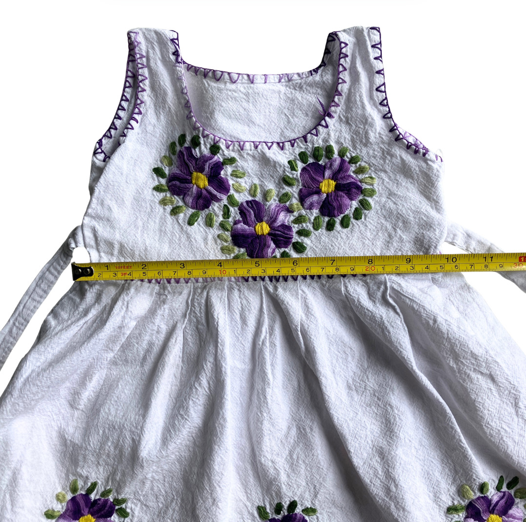 Vintage Handmade Toddler Girls Floral Embroidered Cotton Dress White Purple