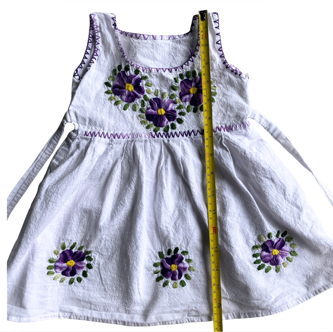 как выглядит Vintage Handmade Toddler Girls Floral Embroidered Cotton Dress White Purple фото
