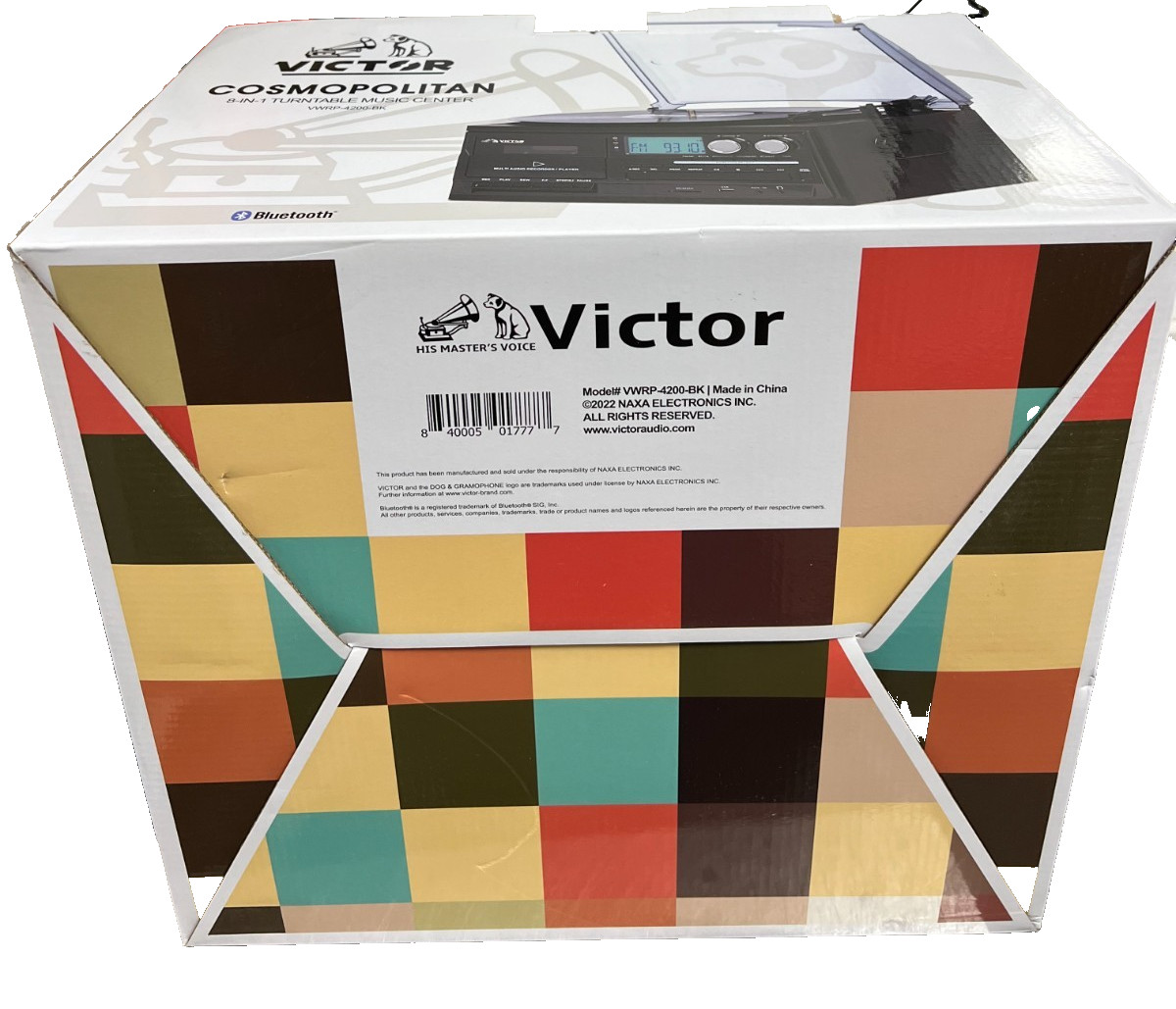 Victor VWRP-4200-BK Cosmopolitan 8-in-1 Turntable Music Turntable Radio Black