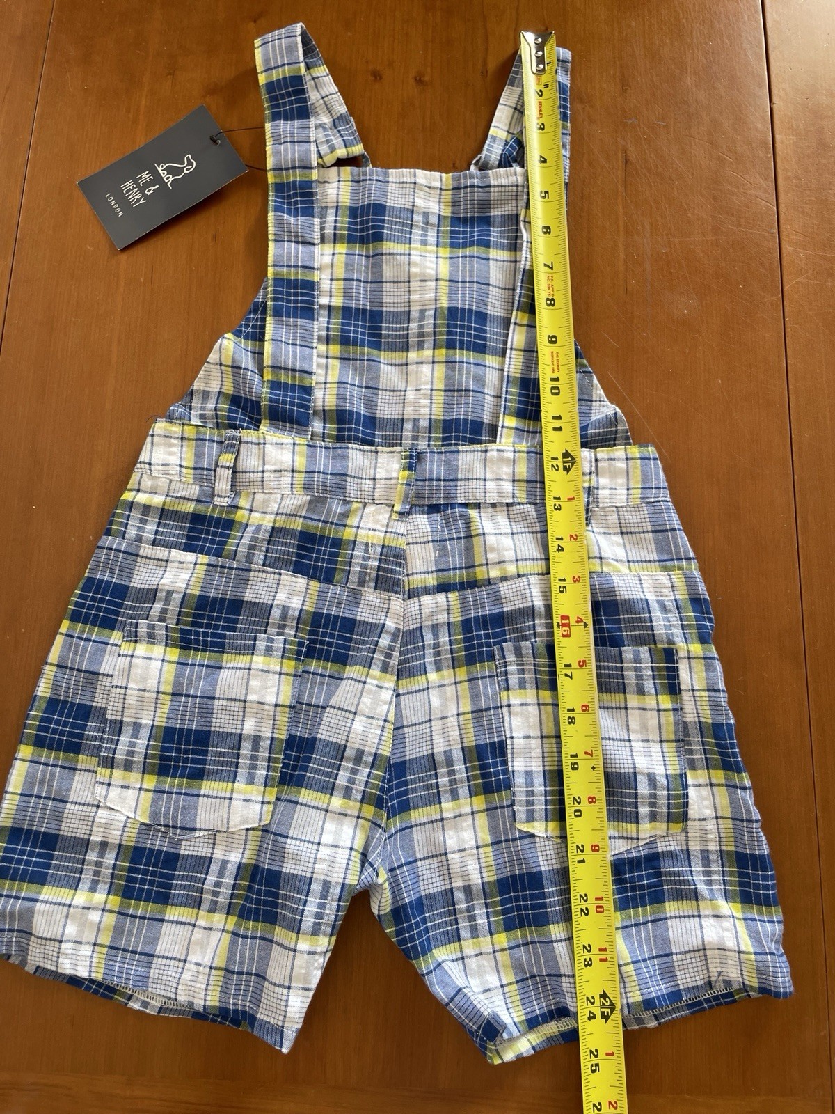 Me Henry London NWT Blue/Yellow/White Plaid Short 5-Pocket Overall-5/6 Years