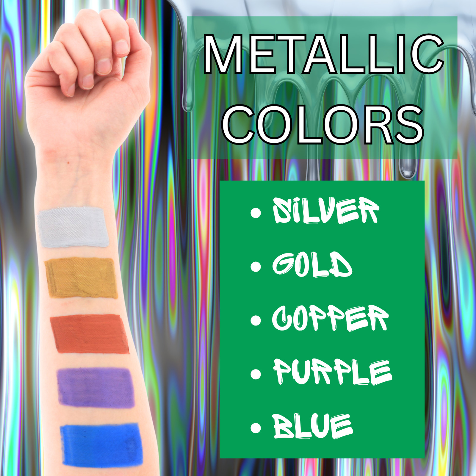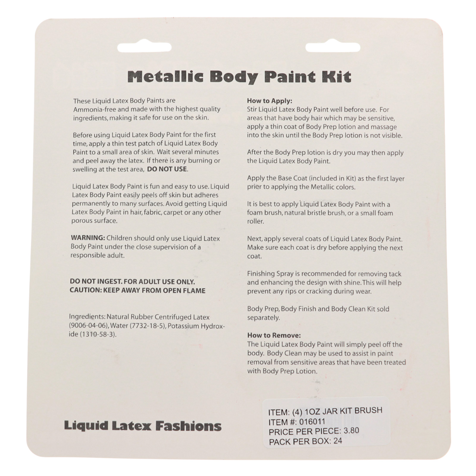 4-Pack Metallic Liquid Latex Kit Four 1 oz Silver, Gold, Copper Purple 2brushes