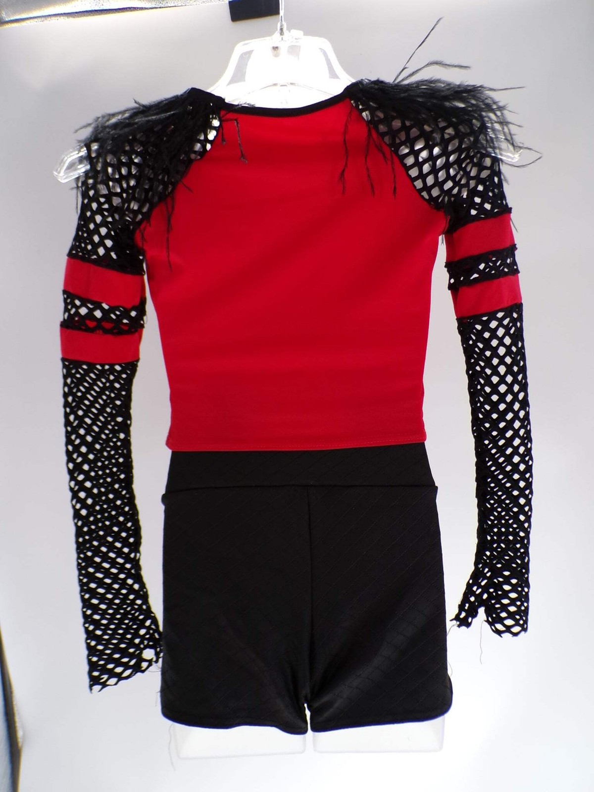 Dance Costume Kelle Feather 2 pc Red Large Child Jazz Tap Spandex Hip Hop Music