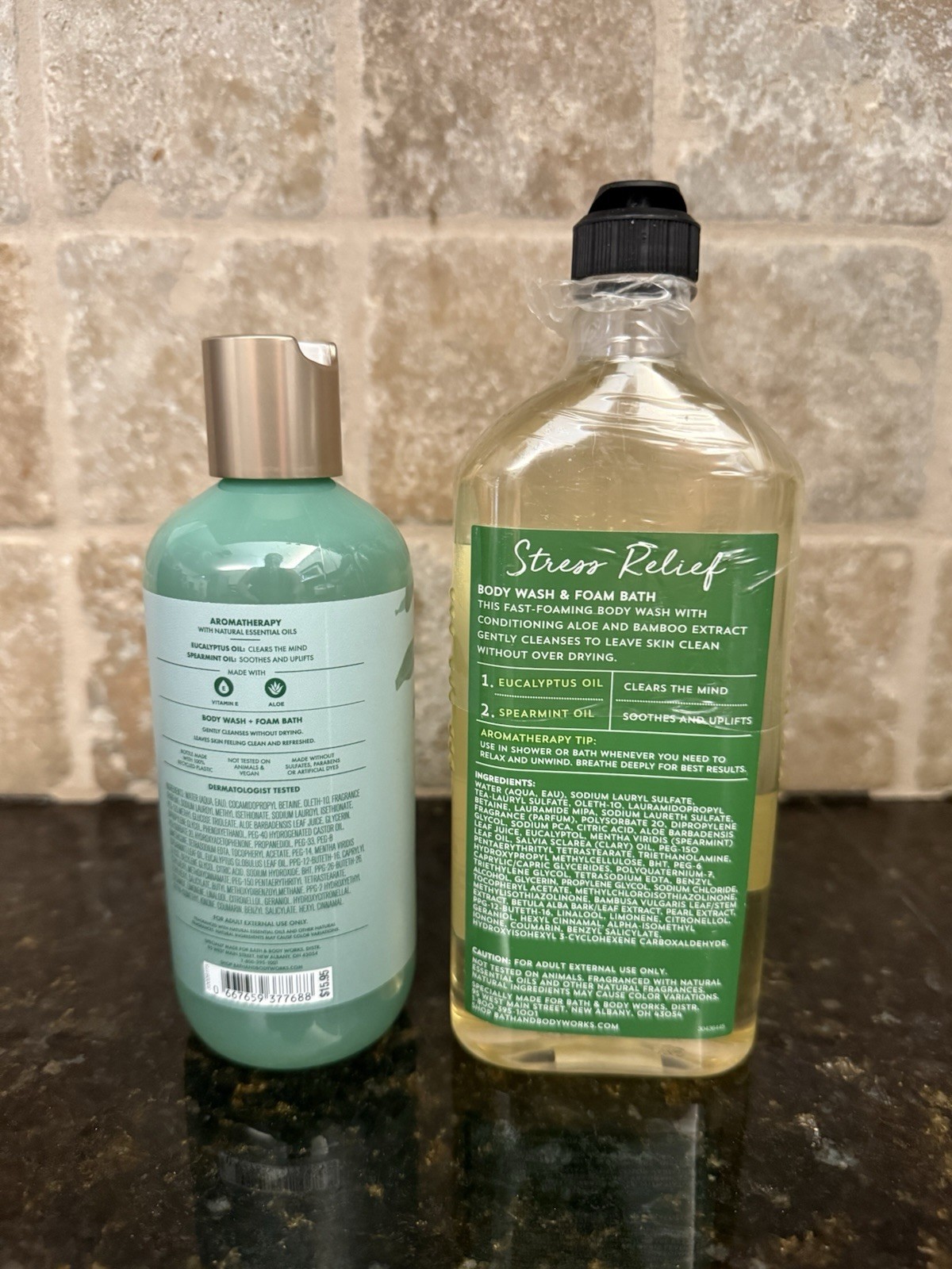 2 Bath and Body Works Aromatherapy Stress Relief Body Wash and Foam Bath