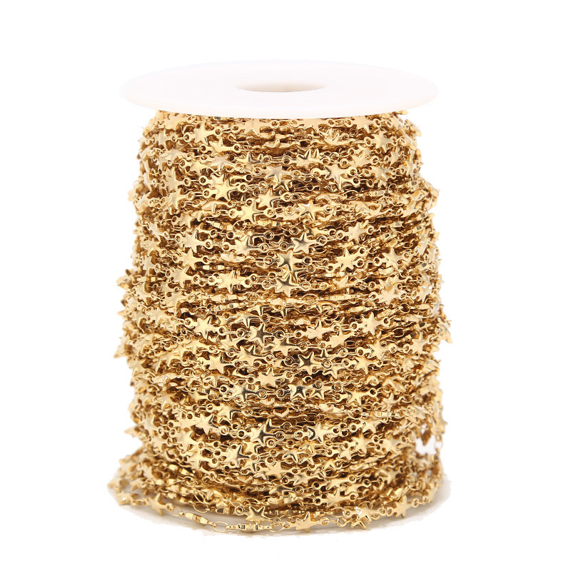 как выглядит 2meters Stainless Steel Gold Plated Stars Handmade Chain for DIY Jewelry Making фото