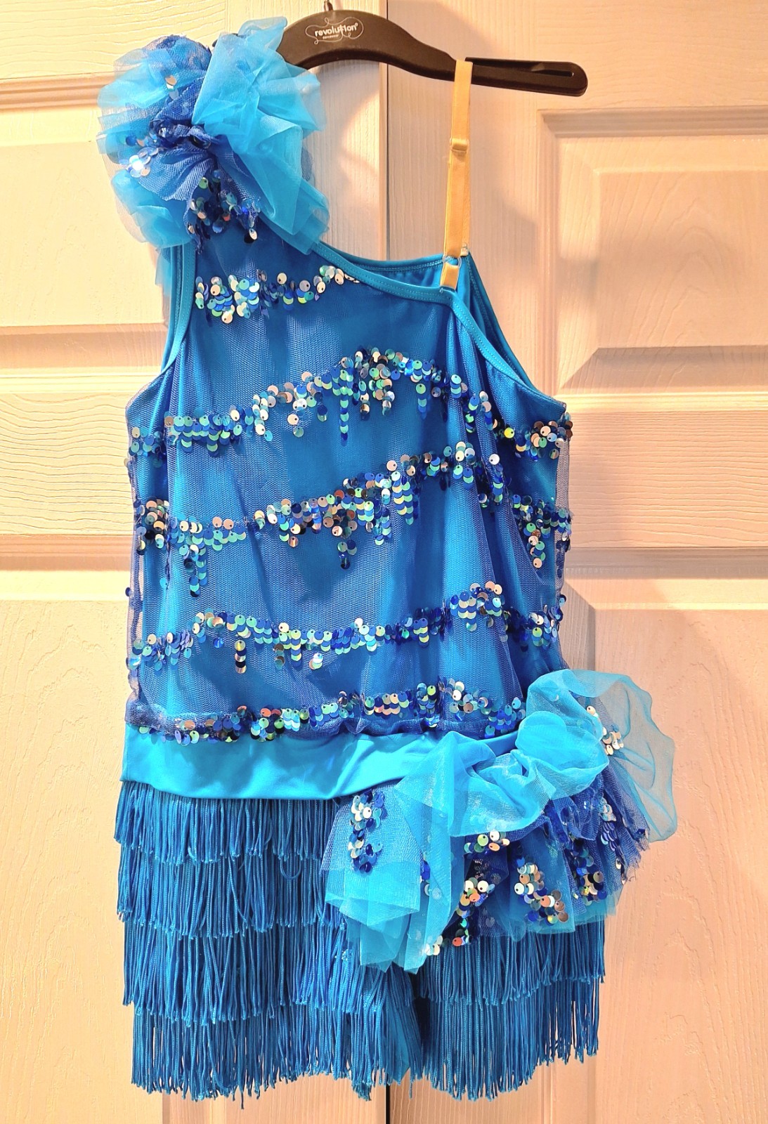 Weissman Blue Sequined Fringe Tap Jazz Dance Costume XL Child