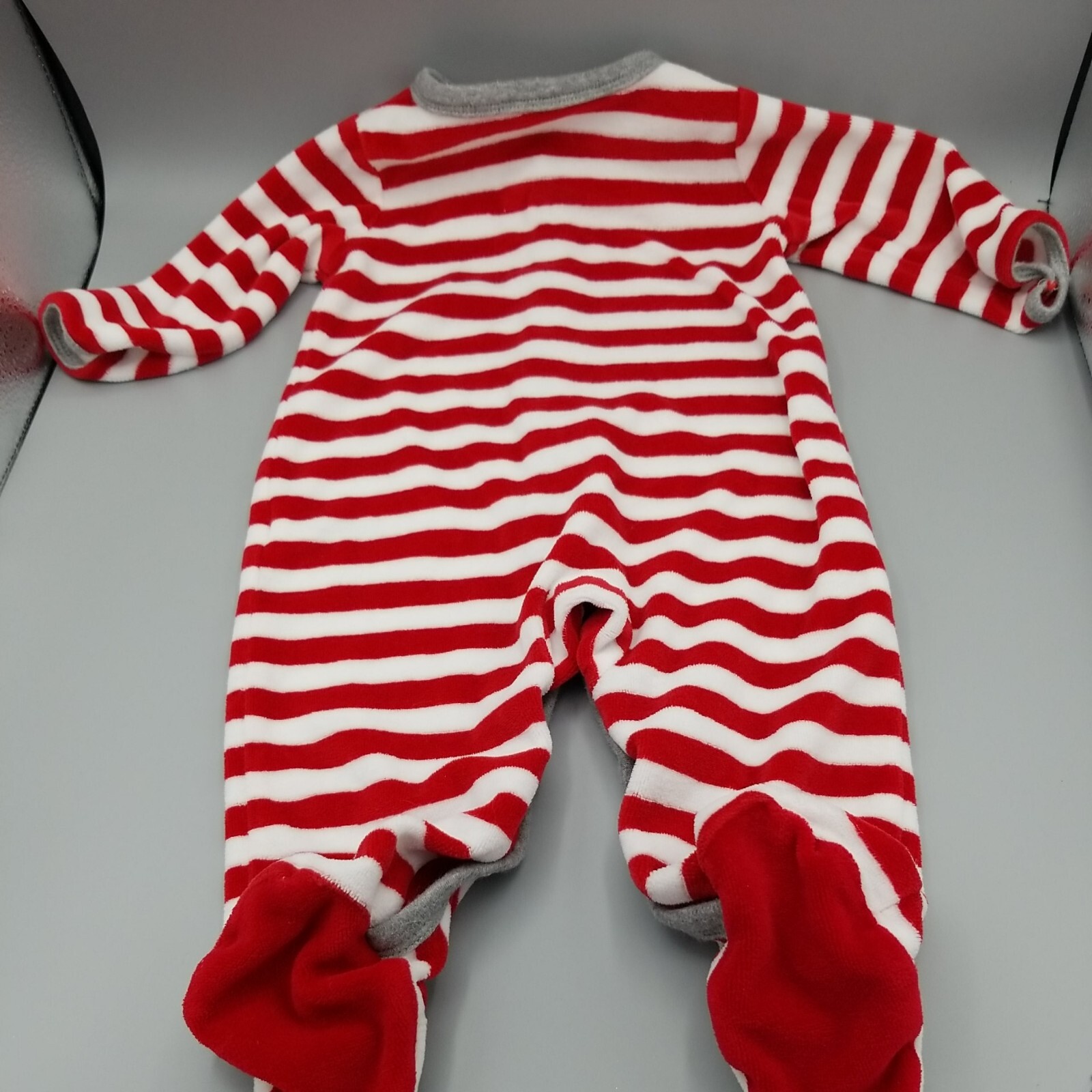 как выглядит Carters Christmas Santa Red White Striped Fleece Sleeper Pajamas Baby 6 Months фото