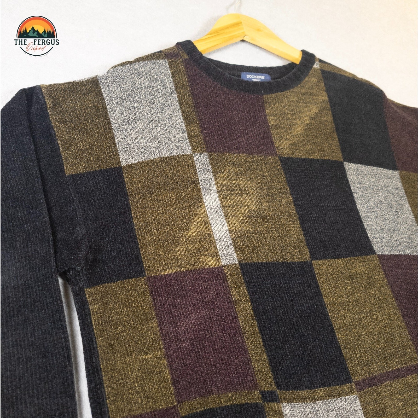 Dockers Pullover Sweater Colorblock Knit Long Sleeve Crew Neck Men's Size Medium