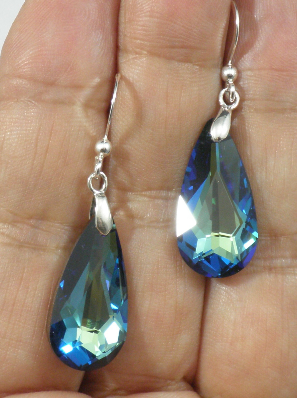 Avilagems Swarovski Crystal Teardrop Bermuda Blue 925 Sterling Silver Earrings L