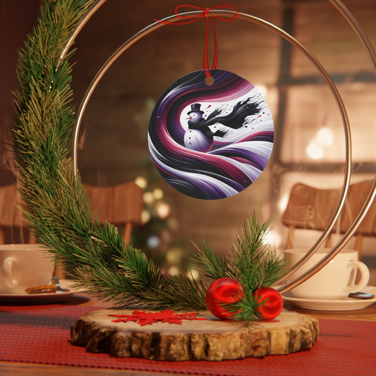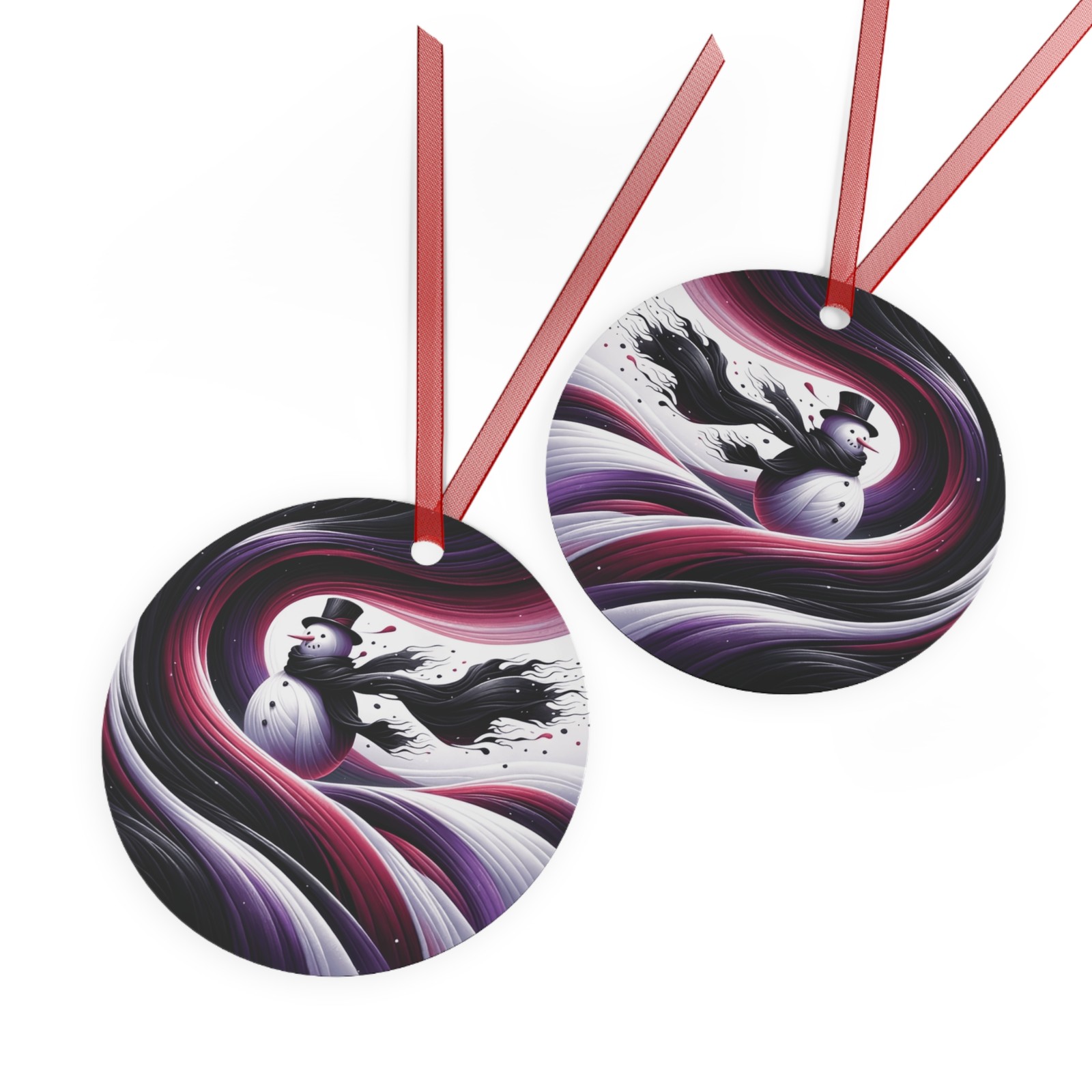 Snowman Frosty Flowing Black Scarf Metal Christmas Ornament Dark Edgy Gothic
