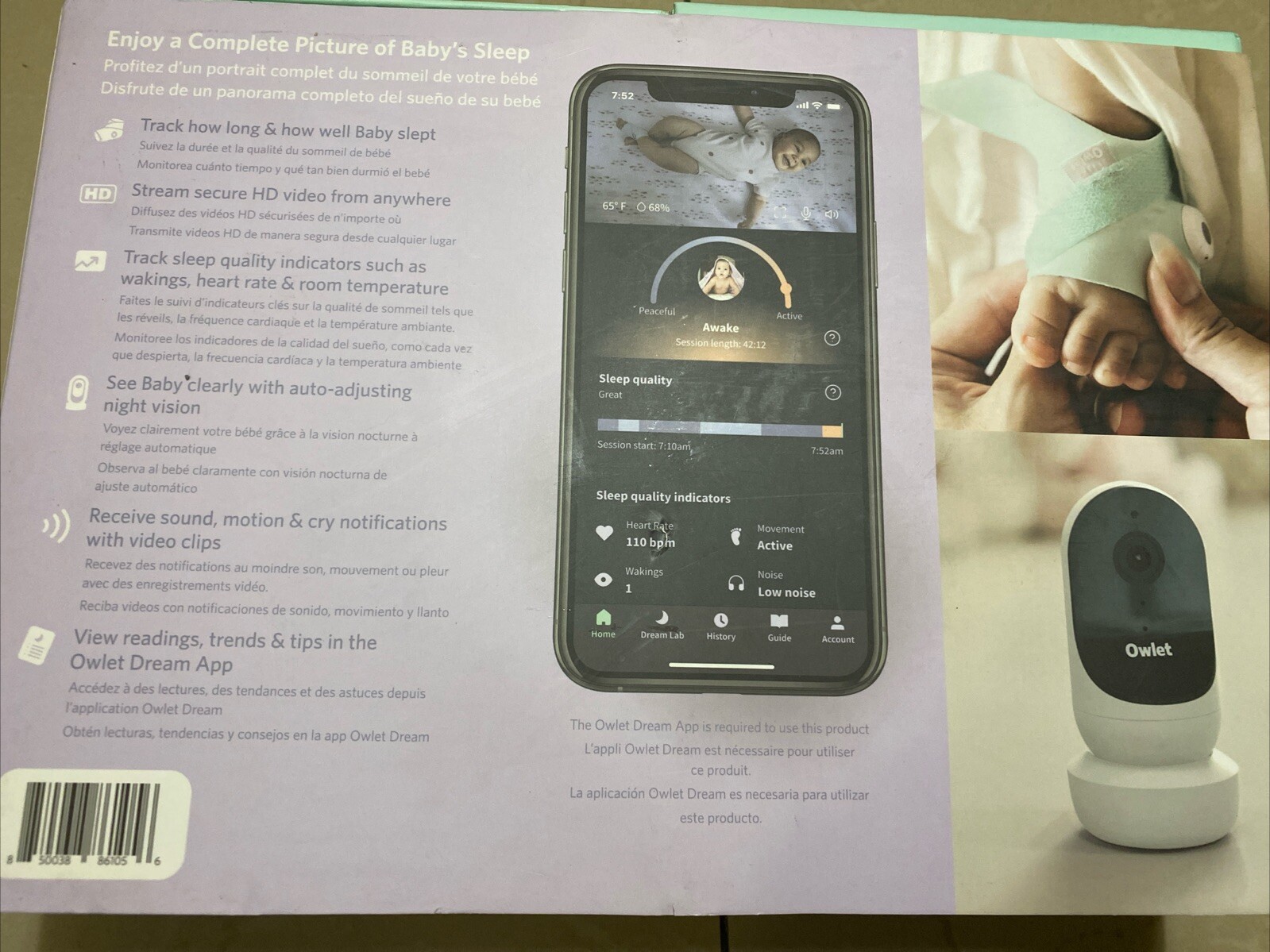как выглядит OPEN BOX Owlet Dream Duo 2 Smart Baby Monitor: Dream Sock and Owlet Cam 2 HD фото