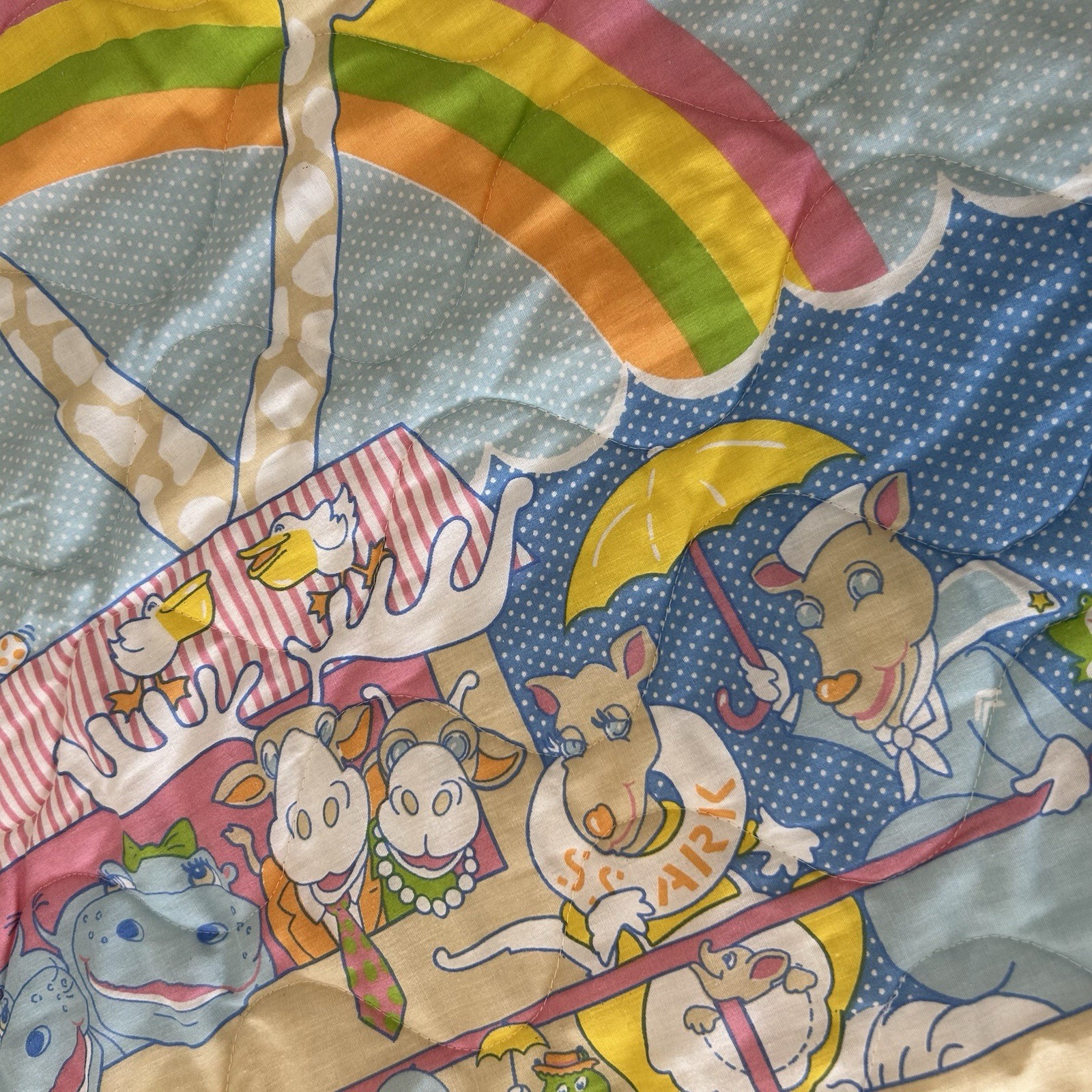 Vintage Noahs Ark Rainbow Crib Bedding Quilt Throw Blanket Wall Hanging