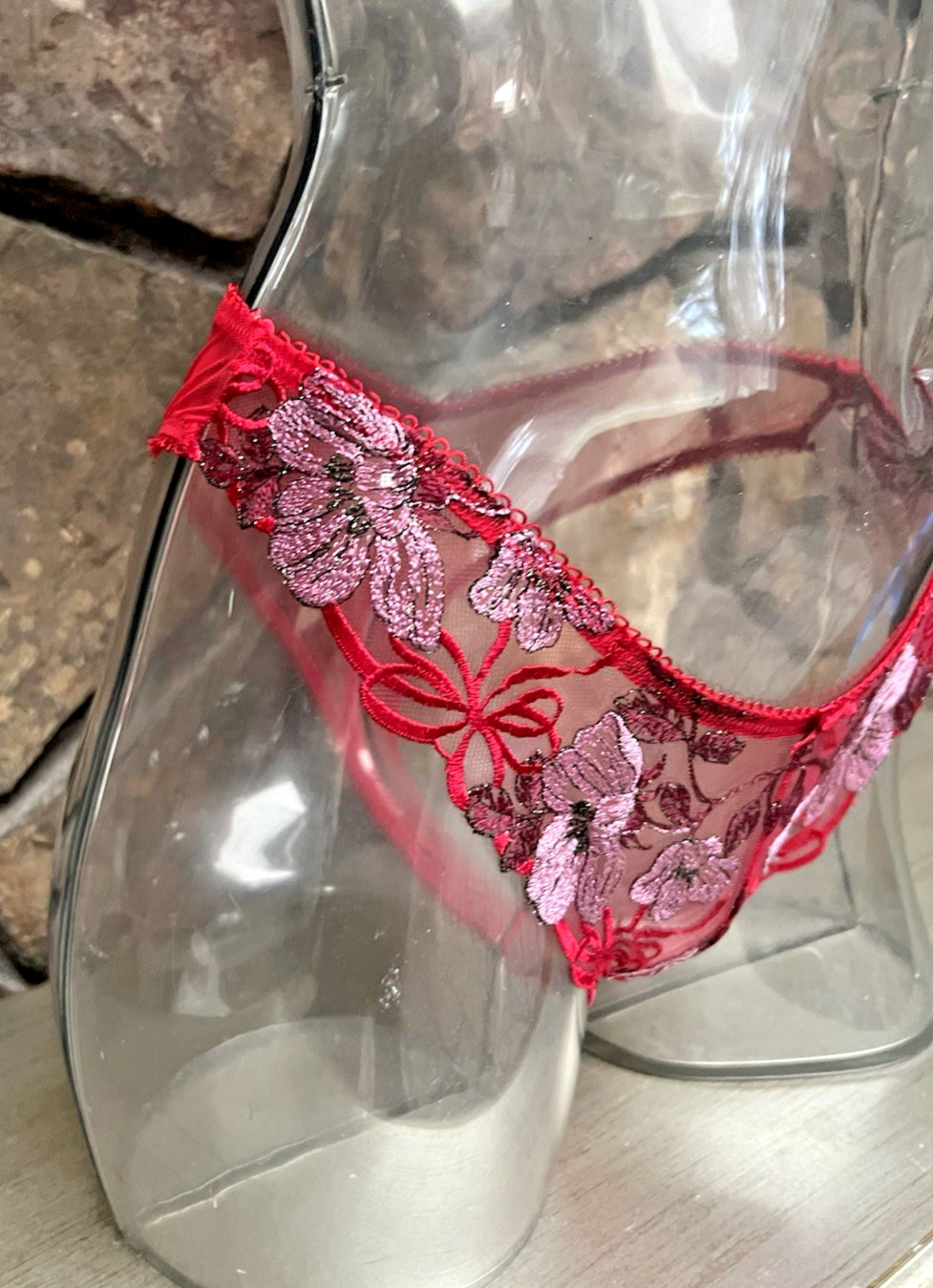 как выглядит Victorias Secret DREAM ANGELS BRAZILIAN Red Floral Embroidery Panty Sz L NWT 29 фото