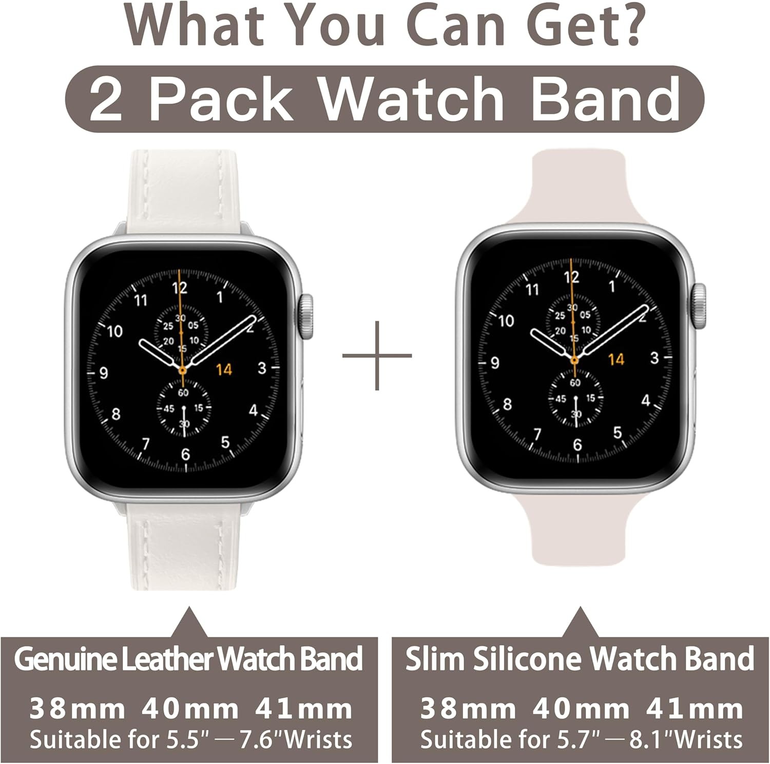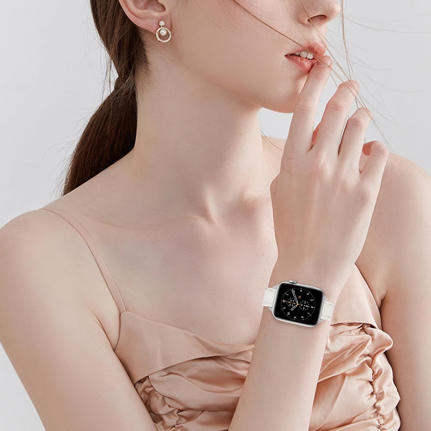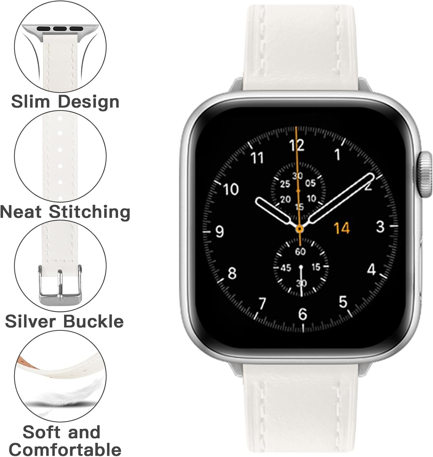 Slim Leather Replacement Bands for Apple Watch 38-49mm, Compatible with Series 1