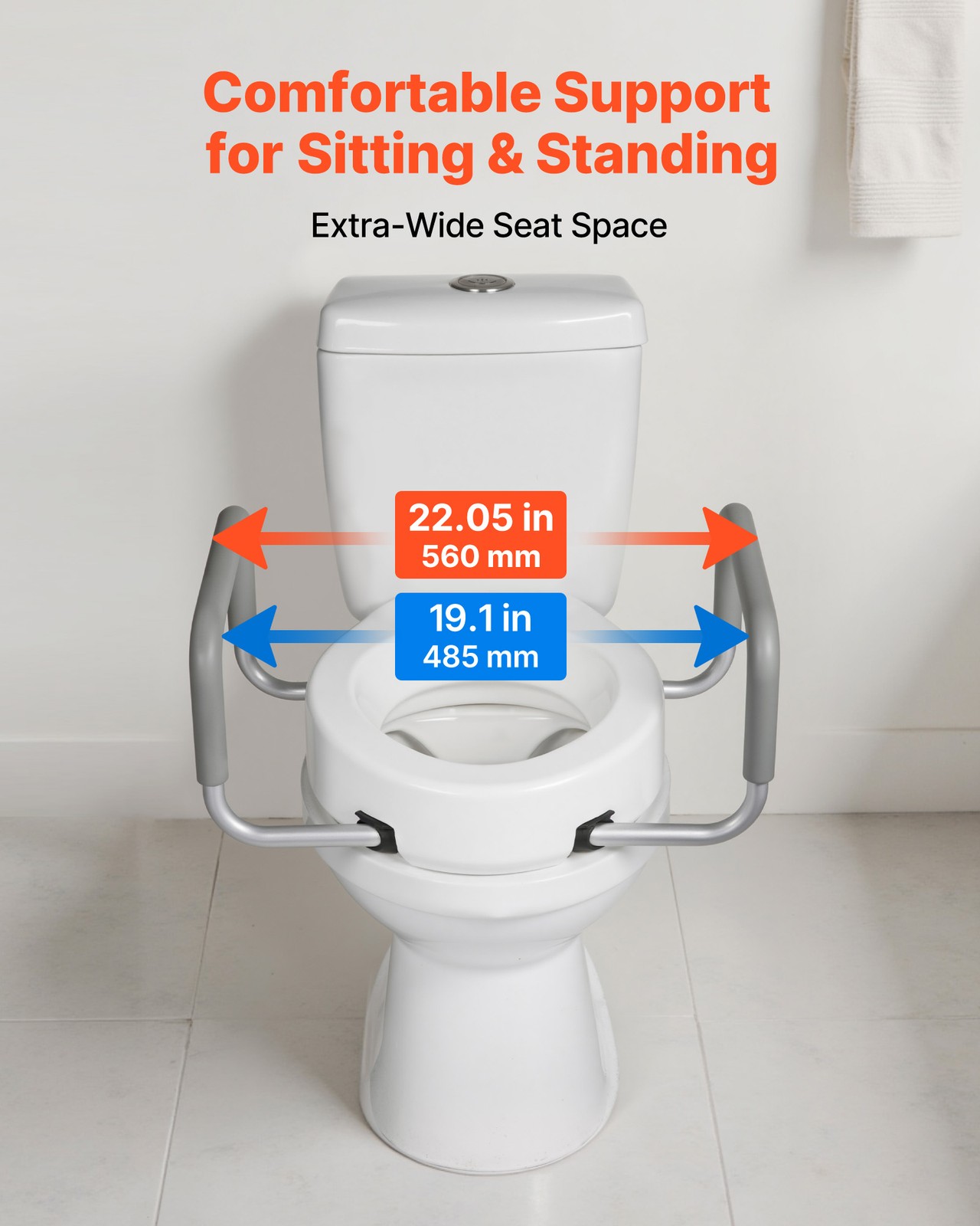 VEVOR Raised Toilet Seat Riser with Arms for Elderly Adds 3.5 in Height 300 lbs