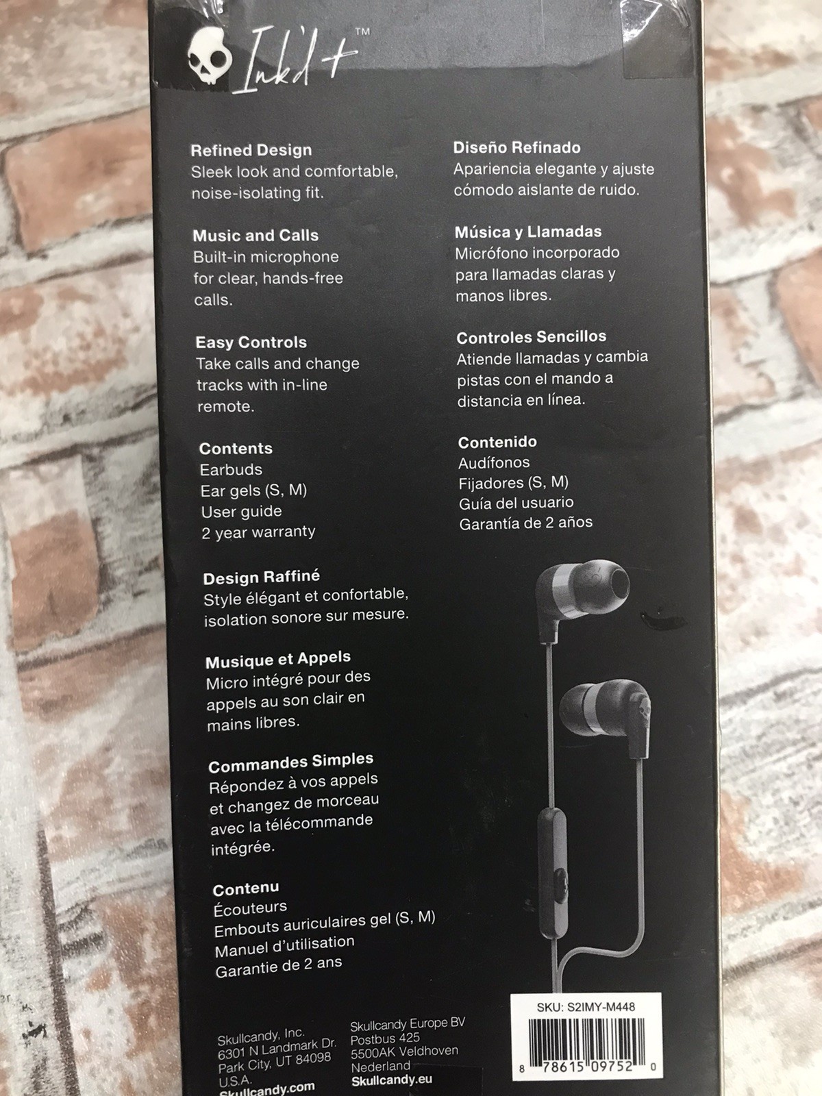 как выглядит Skullcandy Inkd Wired In-Ear Earbuds with Microphone - Gray/Black OPEN BOX фото