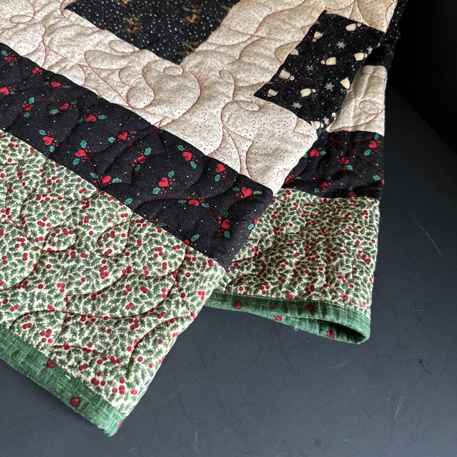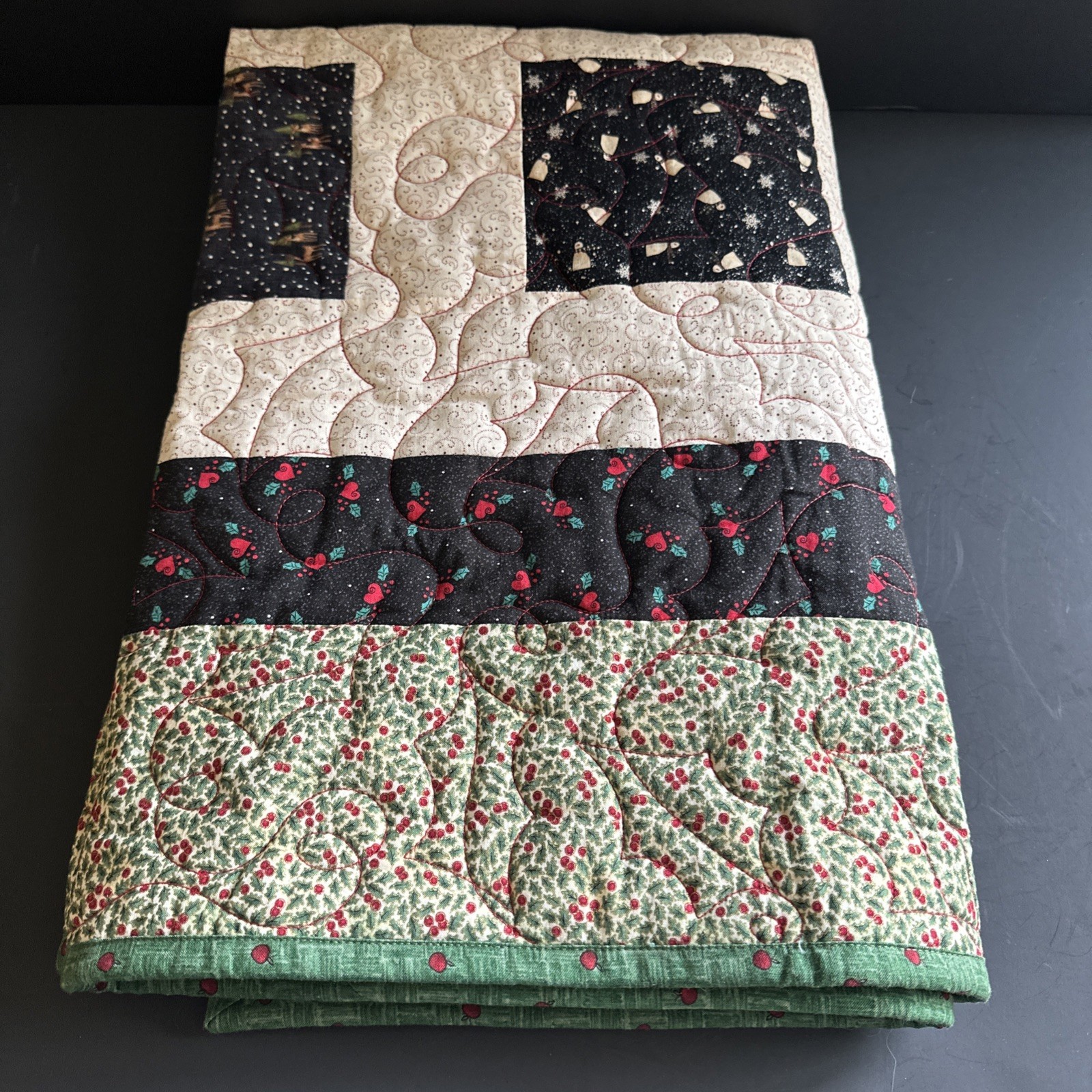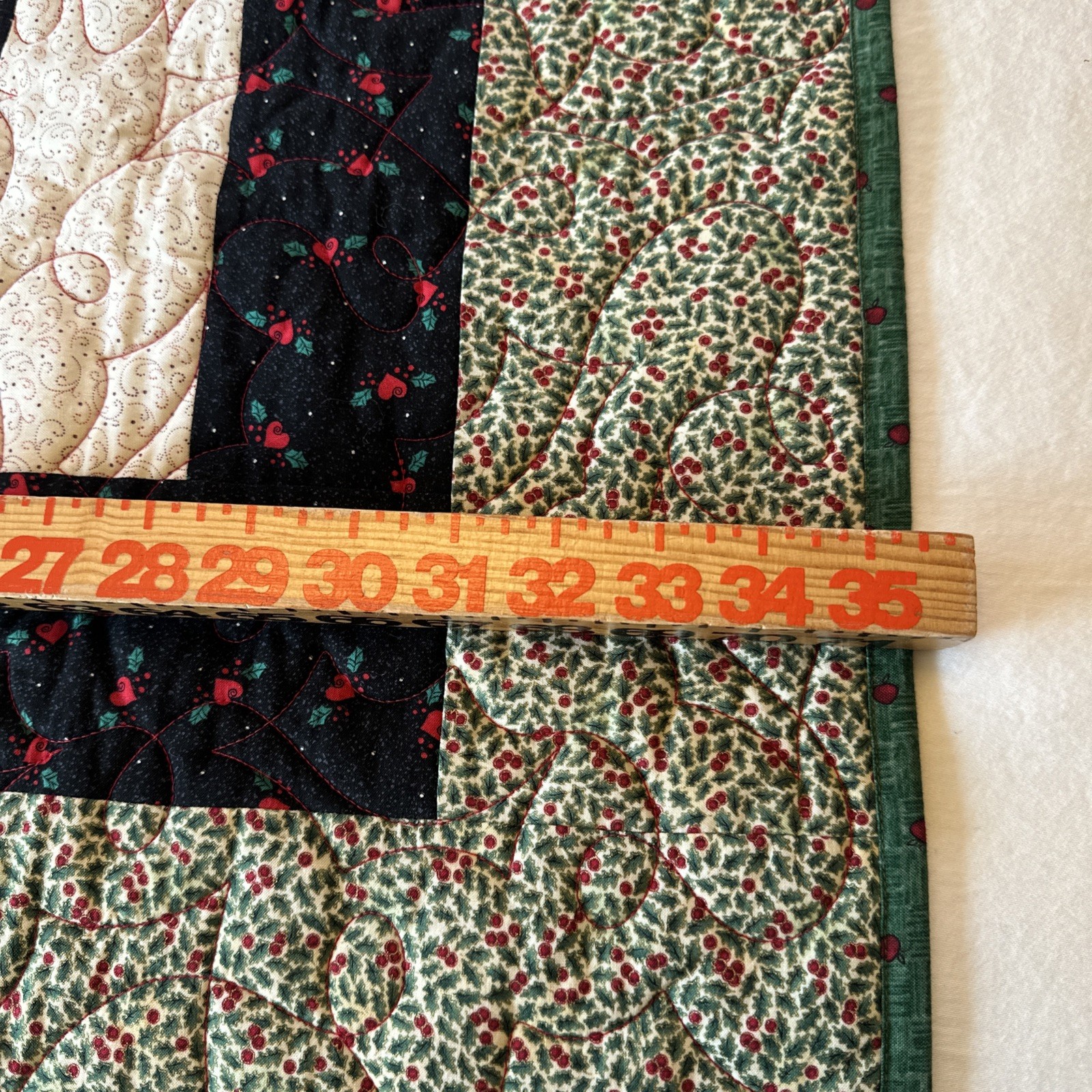 Christmas Quilt Wall Hanging Table Topper Winter Farmhouse Country Green Black