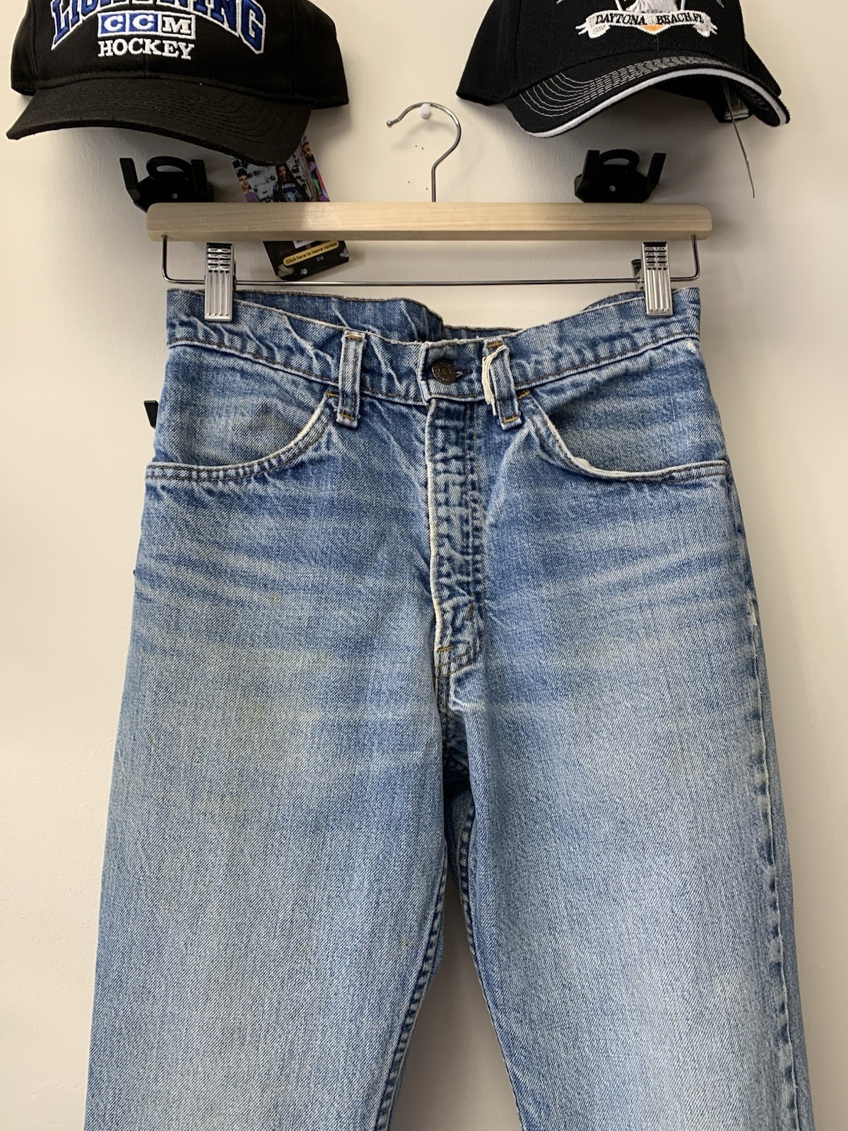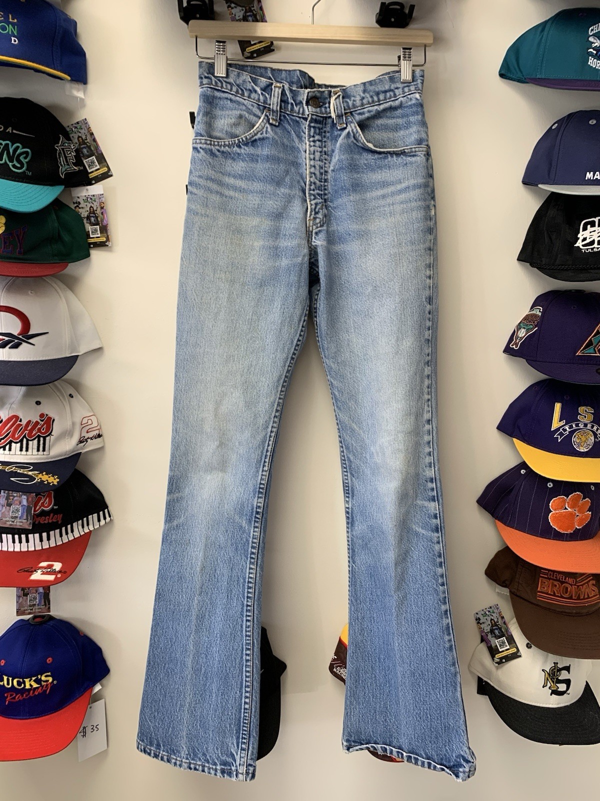 1970s Levi s Orange Tab Light Wash Flare Jeans 26 X 30