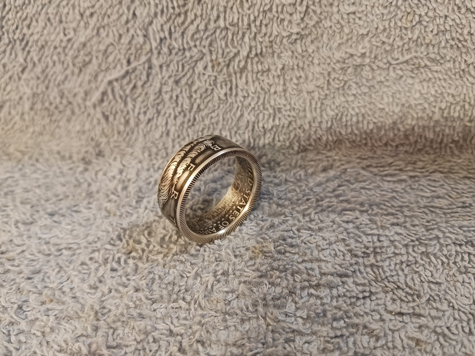 как выглядит 2002 90 Silver Kennedy Half Dollars size 12 coin ring handmade A фото