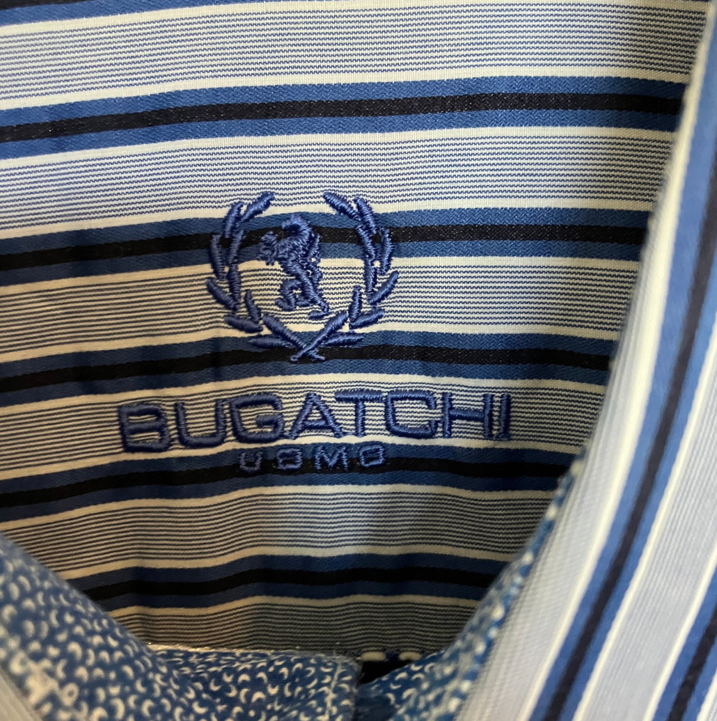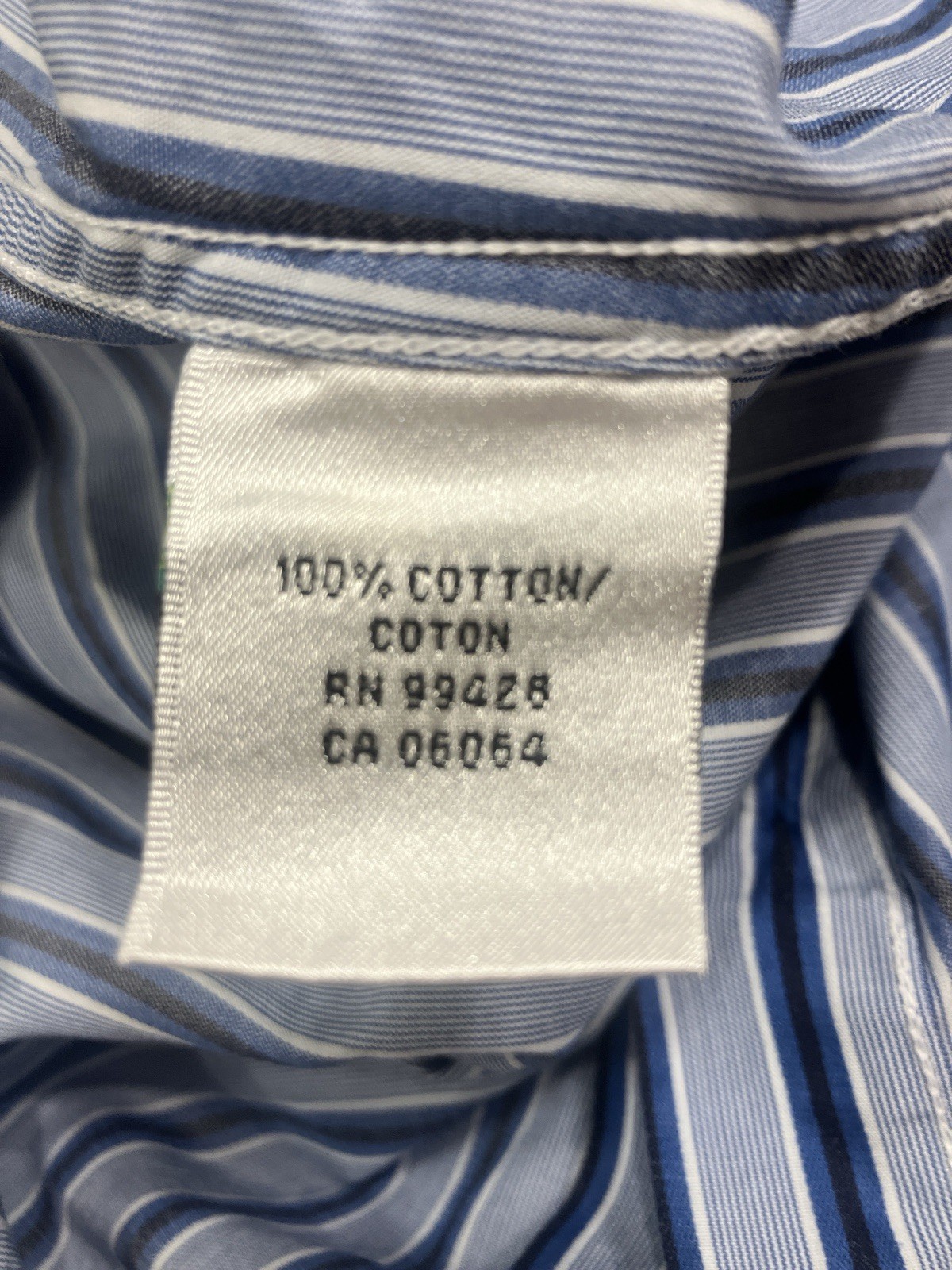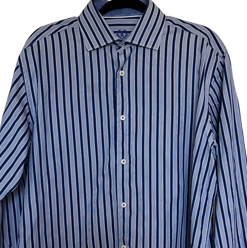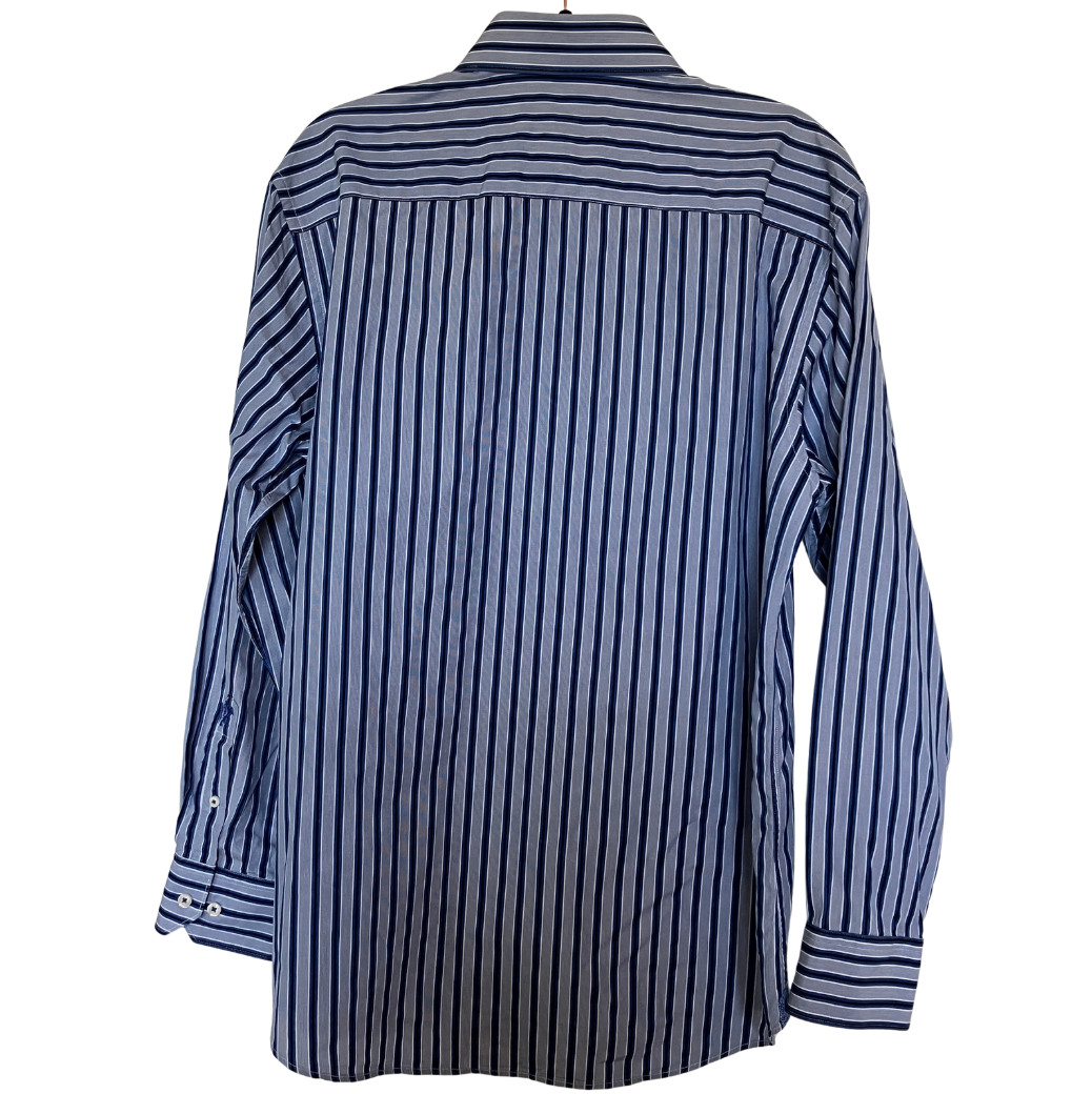 Bugatchi Uomo Men s Blue White Stripe Long Sleeve Dress Shirt Size 17 34/35