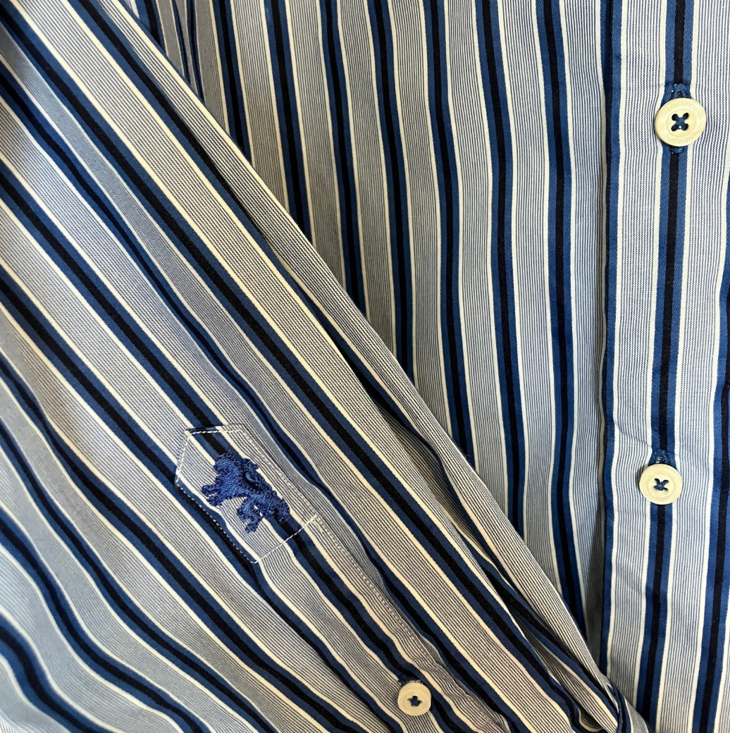 как выглядит Bugatchi Uomo Men s Blue White Stripe Long Sleeve Dress Shirt Size 17 34/35 фото