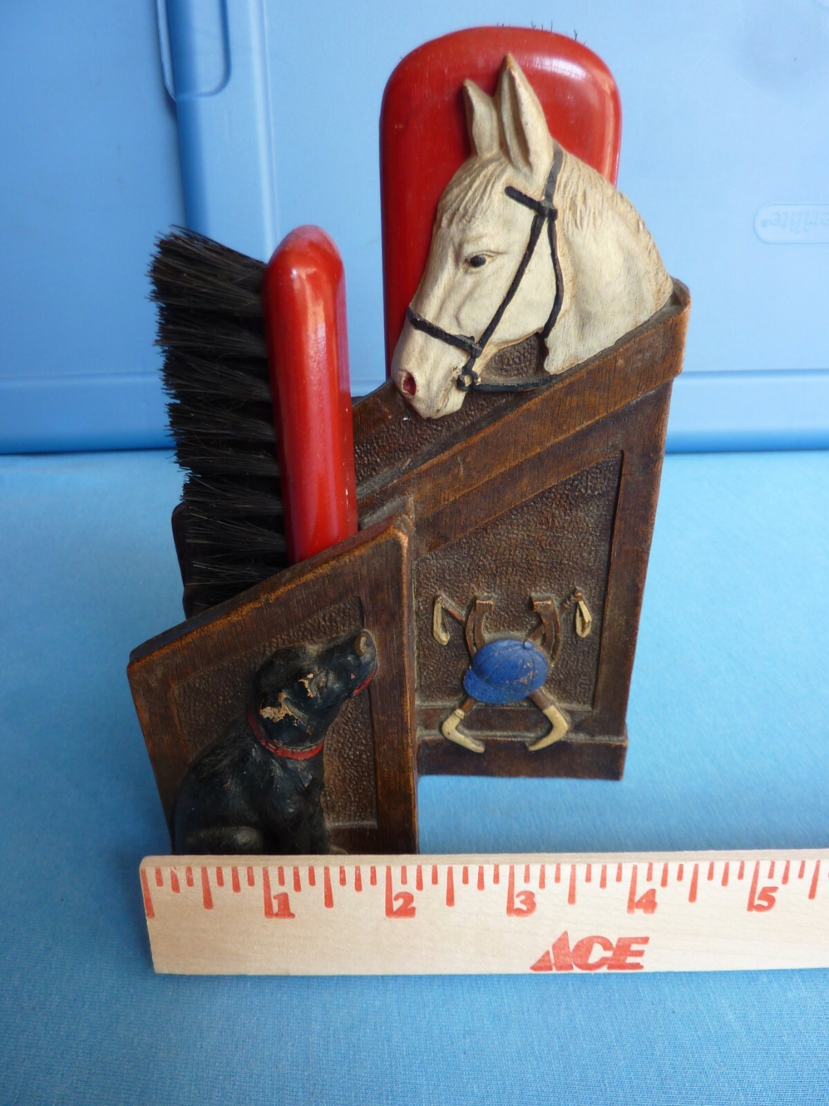 Vintage Syroco Wood Clothes Brush Set Horse head Made in NY USA Horses Cowboy