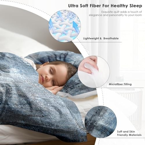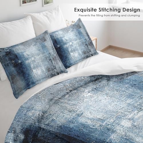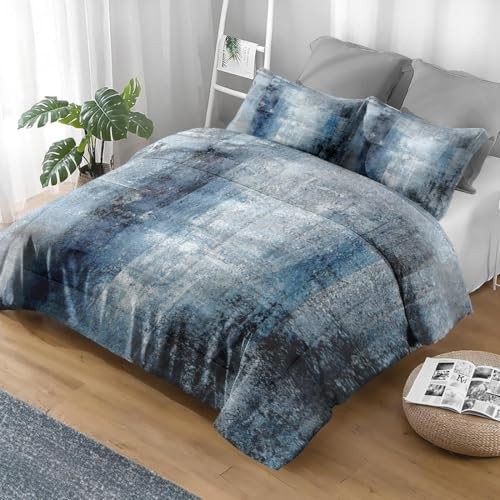 Comforter Set Size, Blue Grey Painting 3 Pcs Soft Bedding King Abstract Blue