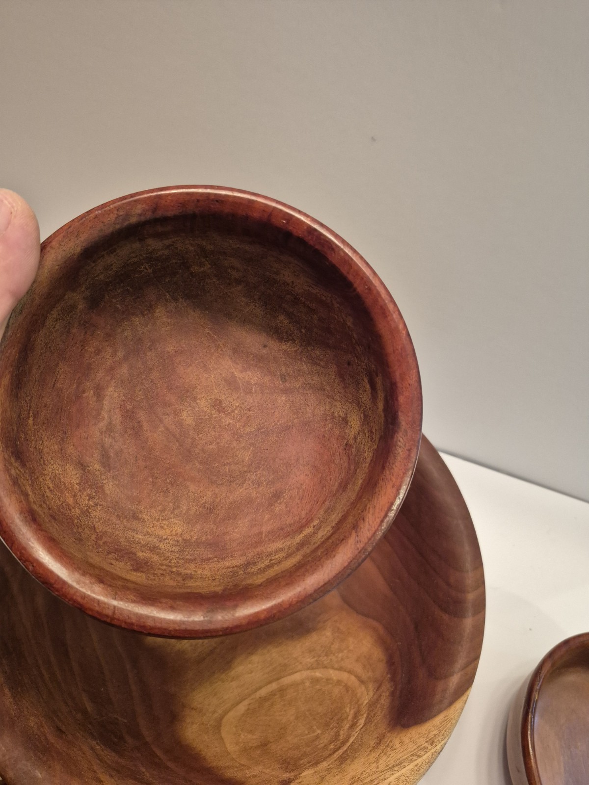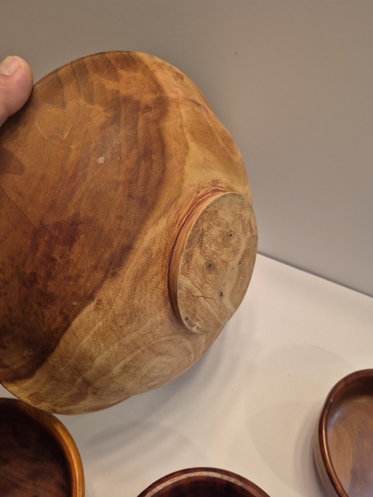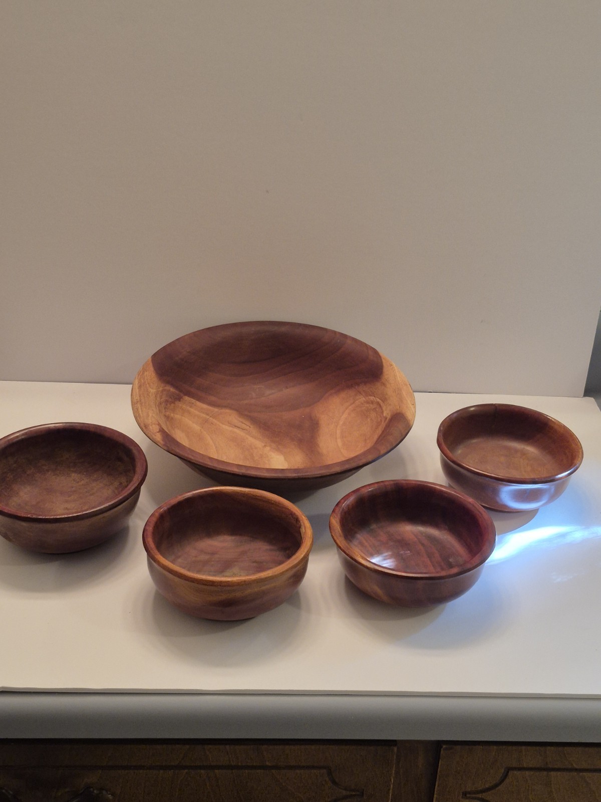 как выглядит 5 Vintage Walnut Wooden Hand carved Bowls Set Oval Hand Turned фото