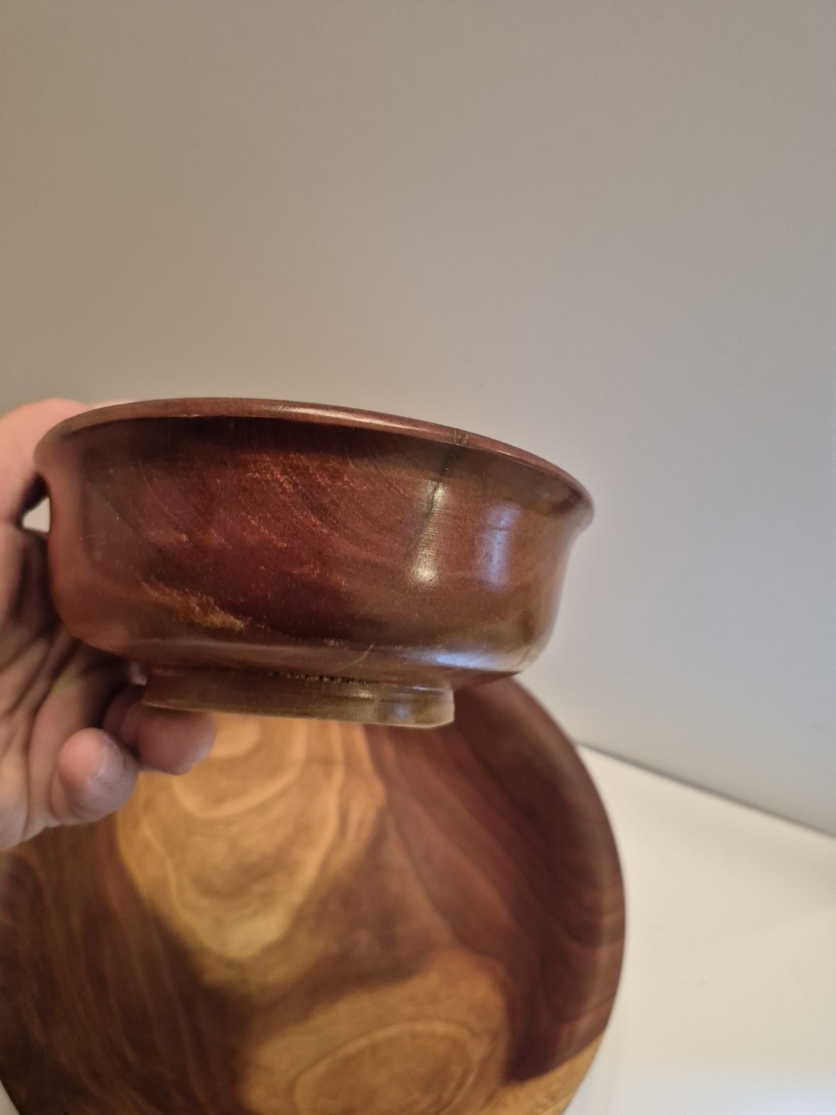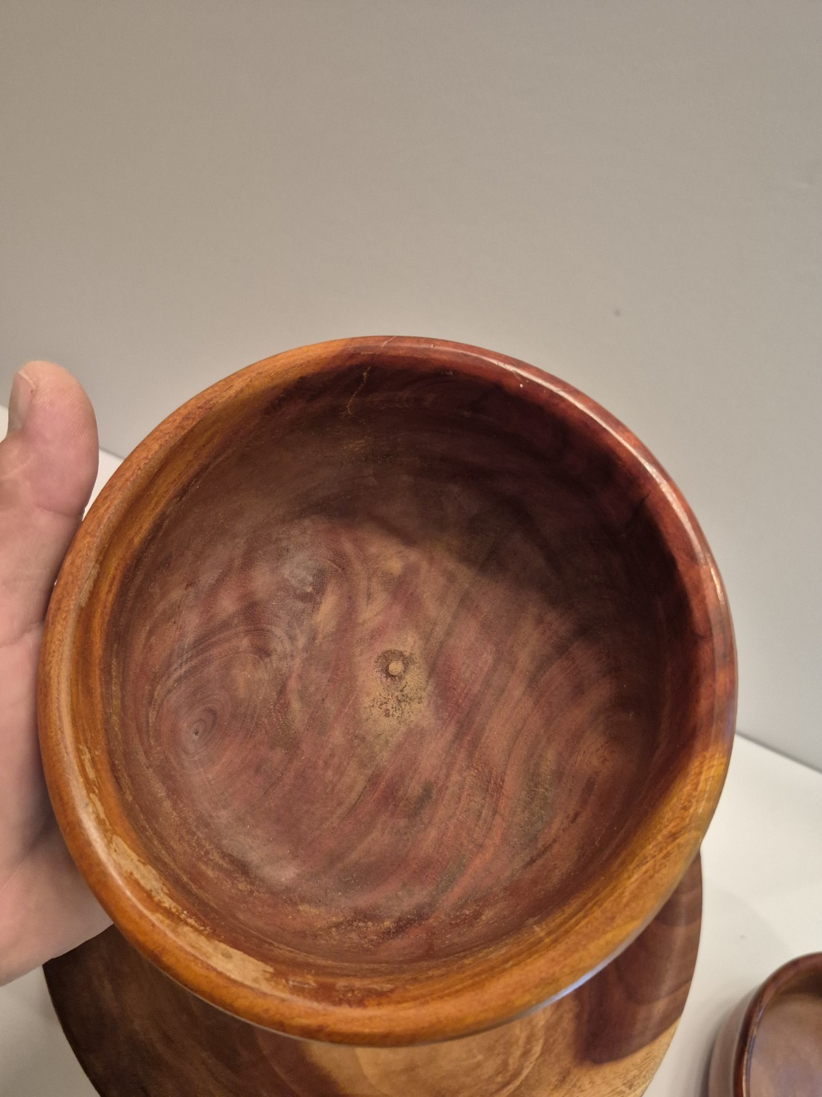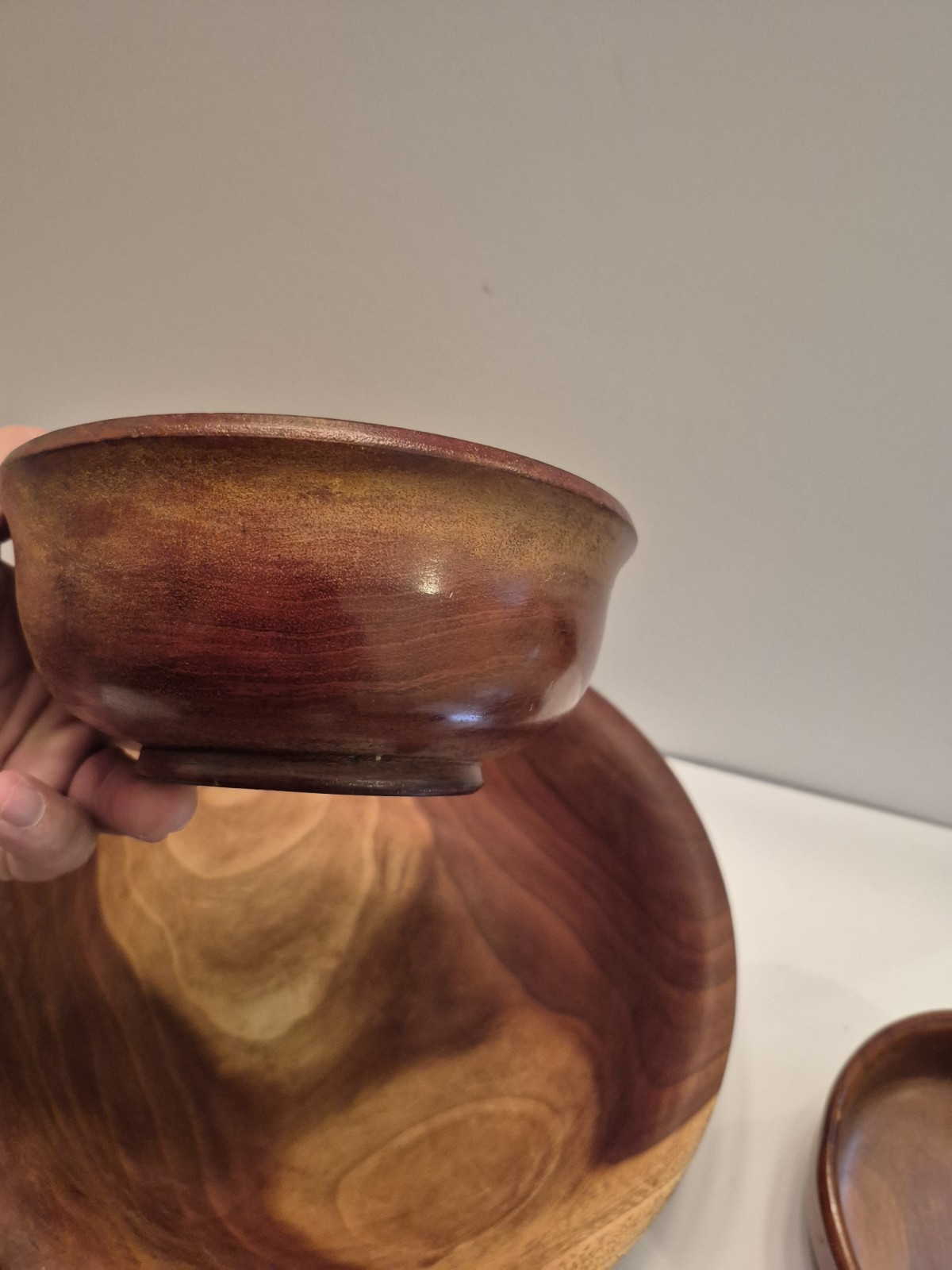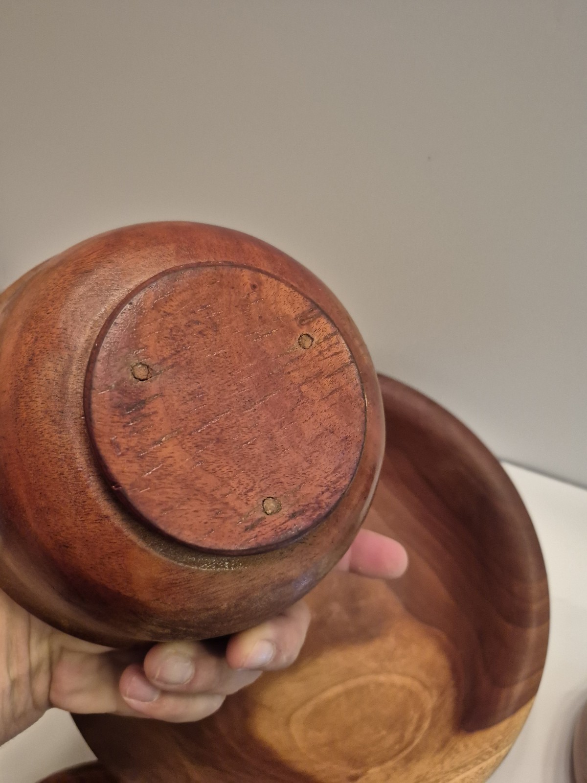 как выглядит 5 Vintage Walnut Wooden Hand carved Bowls Set Oval Hand Turned фото