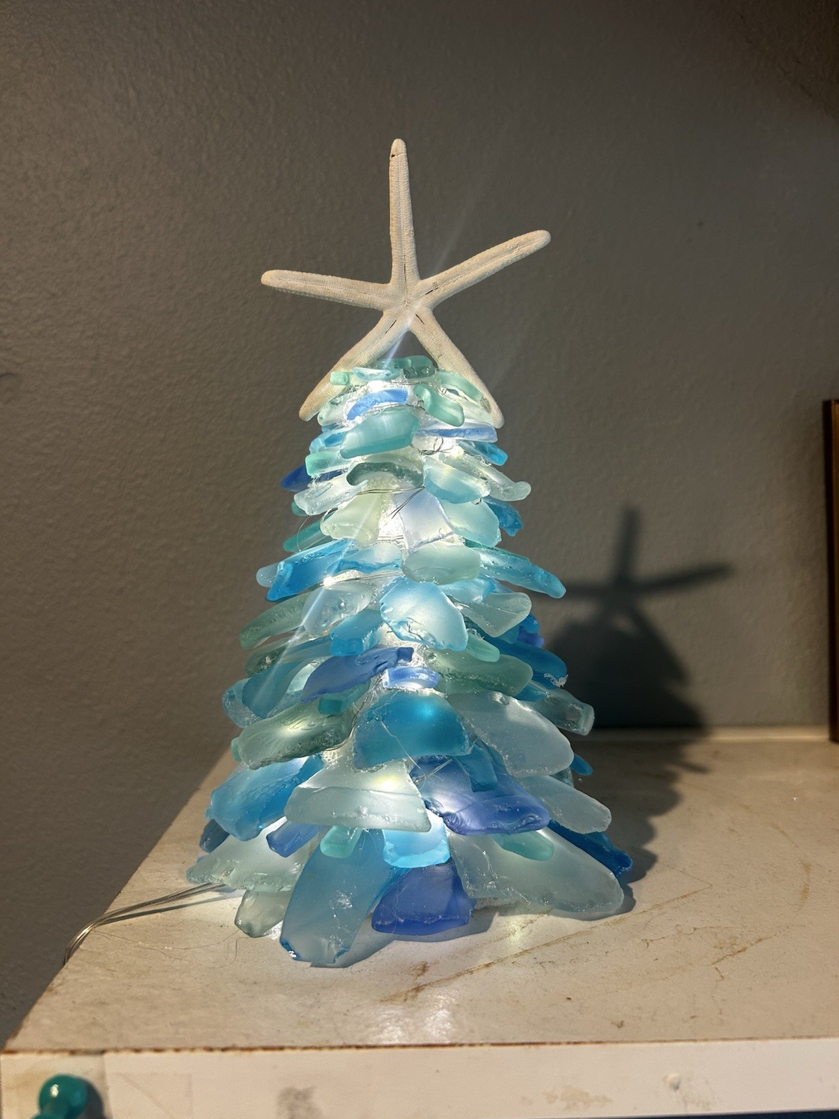 Custom Tumbled Glass Lights Christmas Tree Looks Like Sea Glass 9.5 inches tall