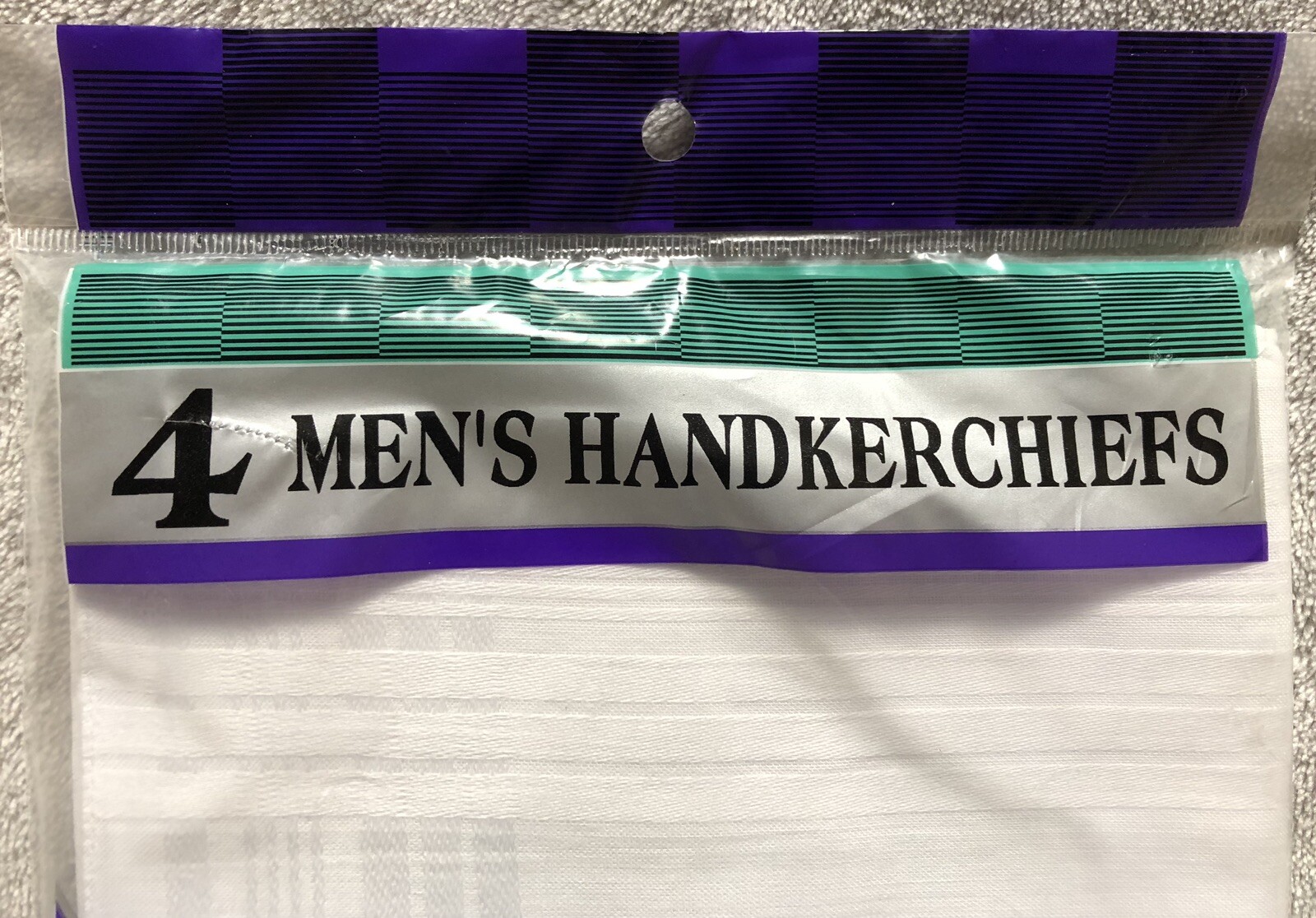 NEW Paris Accessories Inc White Satin Stripe 100 Cotton Handkerchiefs 4ct Pk