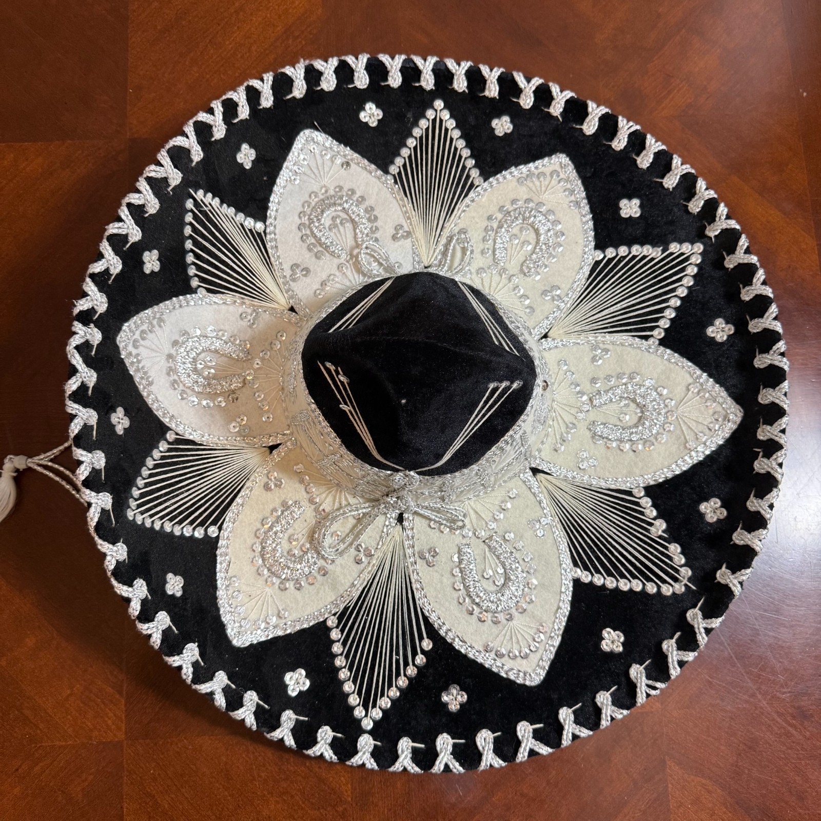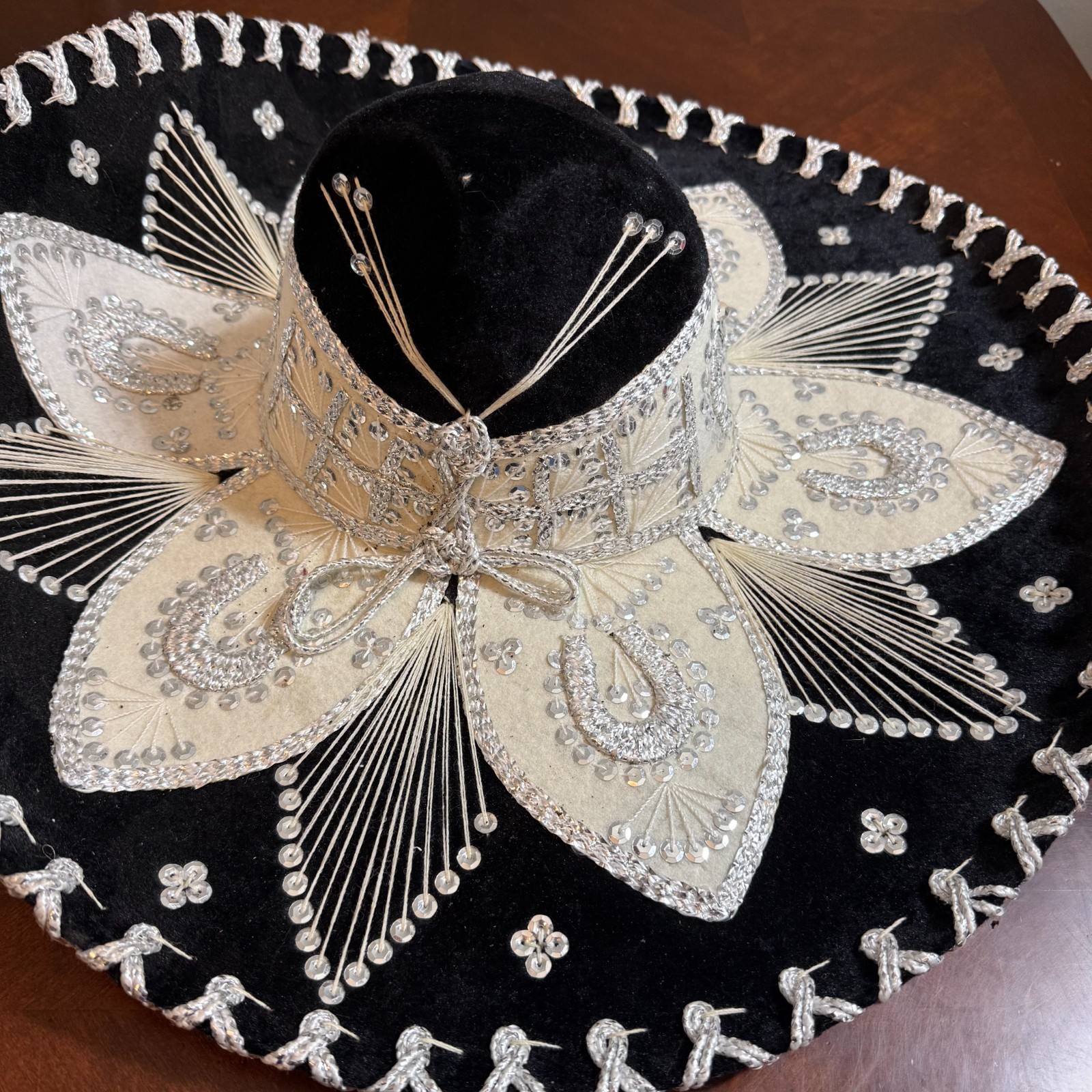 • Vintage Mexican Sombrero Artisanal Velvet Silver Embroidered Handmade