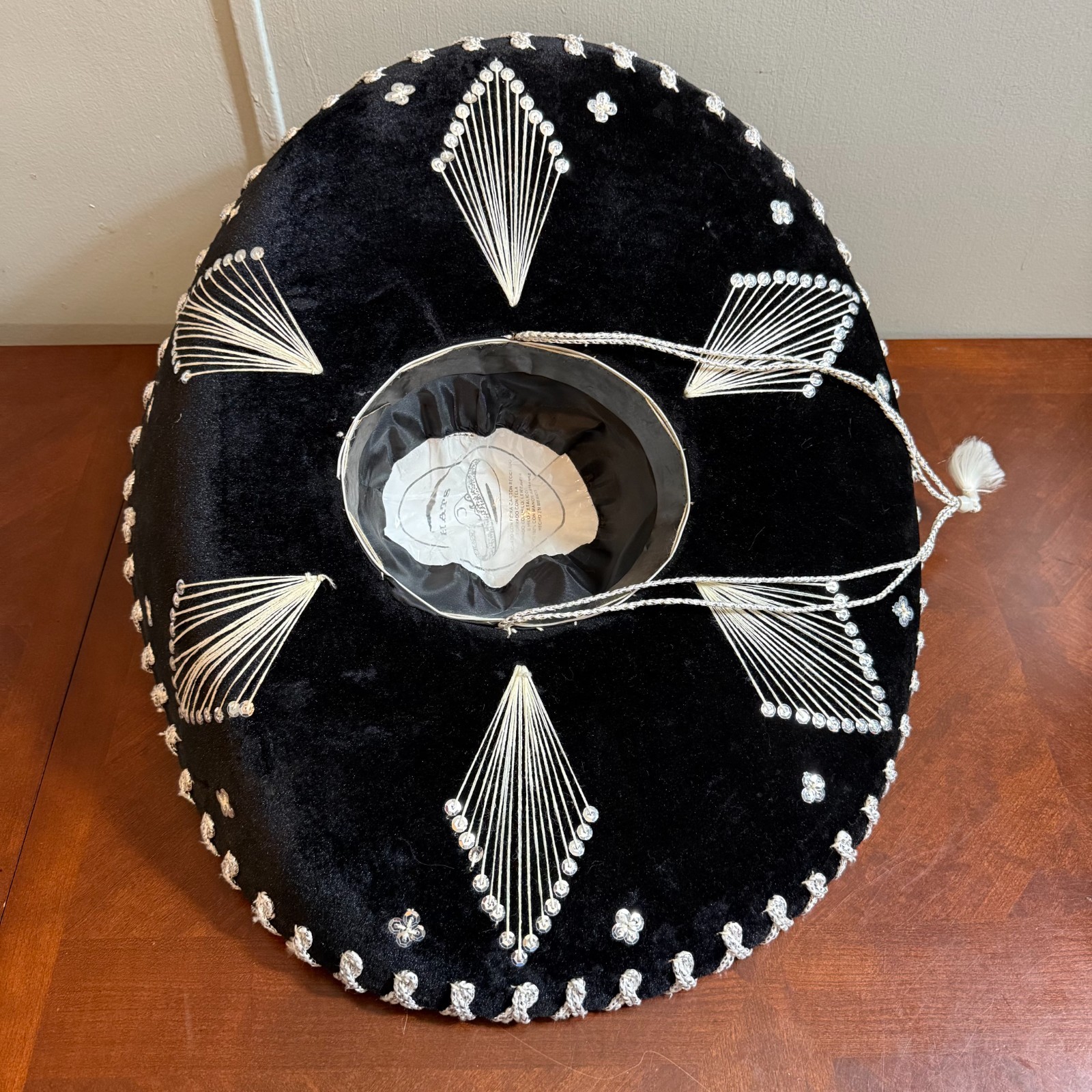 как выглядит Vintage Mexican Sombrero Artisanal Velvet Silver Embroidered Handmade фото