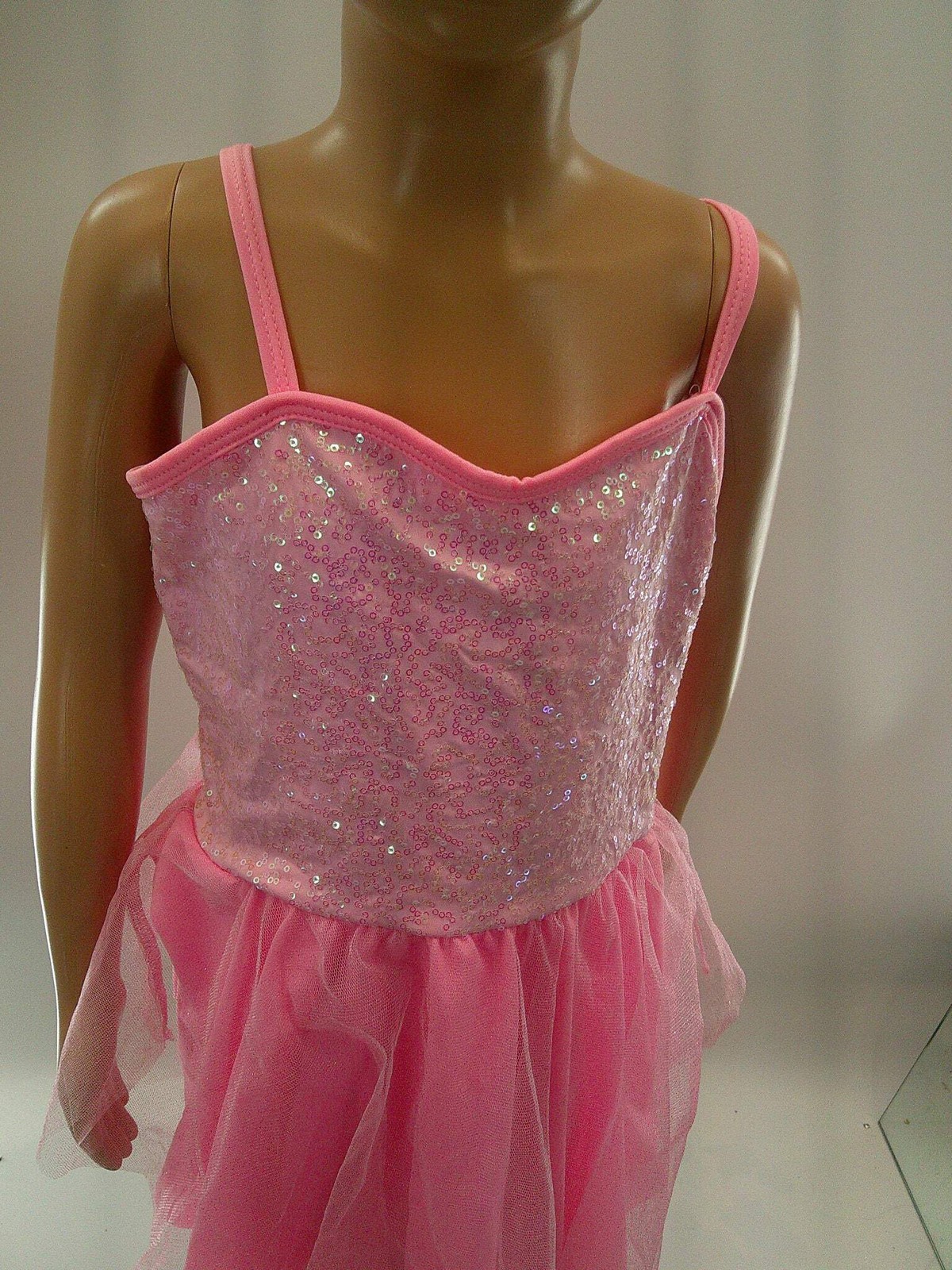 Dance Costume large Child Pink Curtain Call E1038 Lyrical Ballet Sequin Glitter