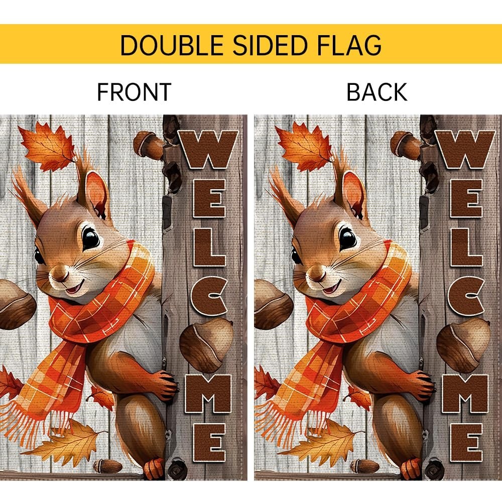 Welcome Autumn with Double- Sided Fall Garden Flag Cute Squirrel Outdoor Decor