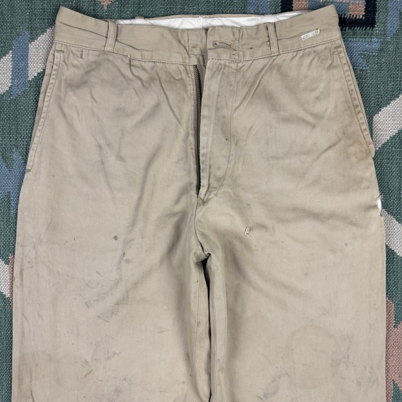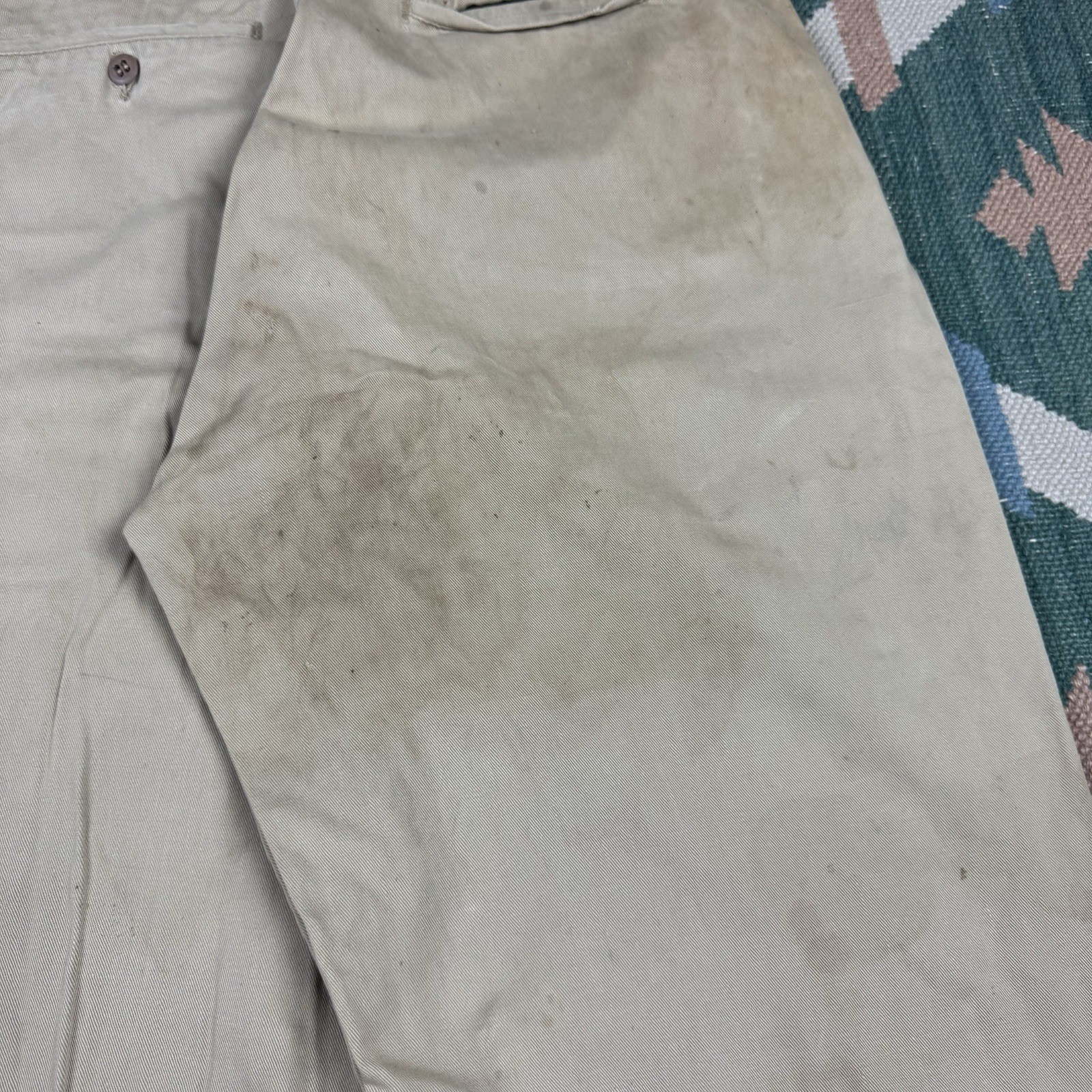 как выглядит Vintage 50s Military Chino Pants Sanforized Khaki Mens 28x32 Workwear WW2 фото
