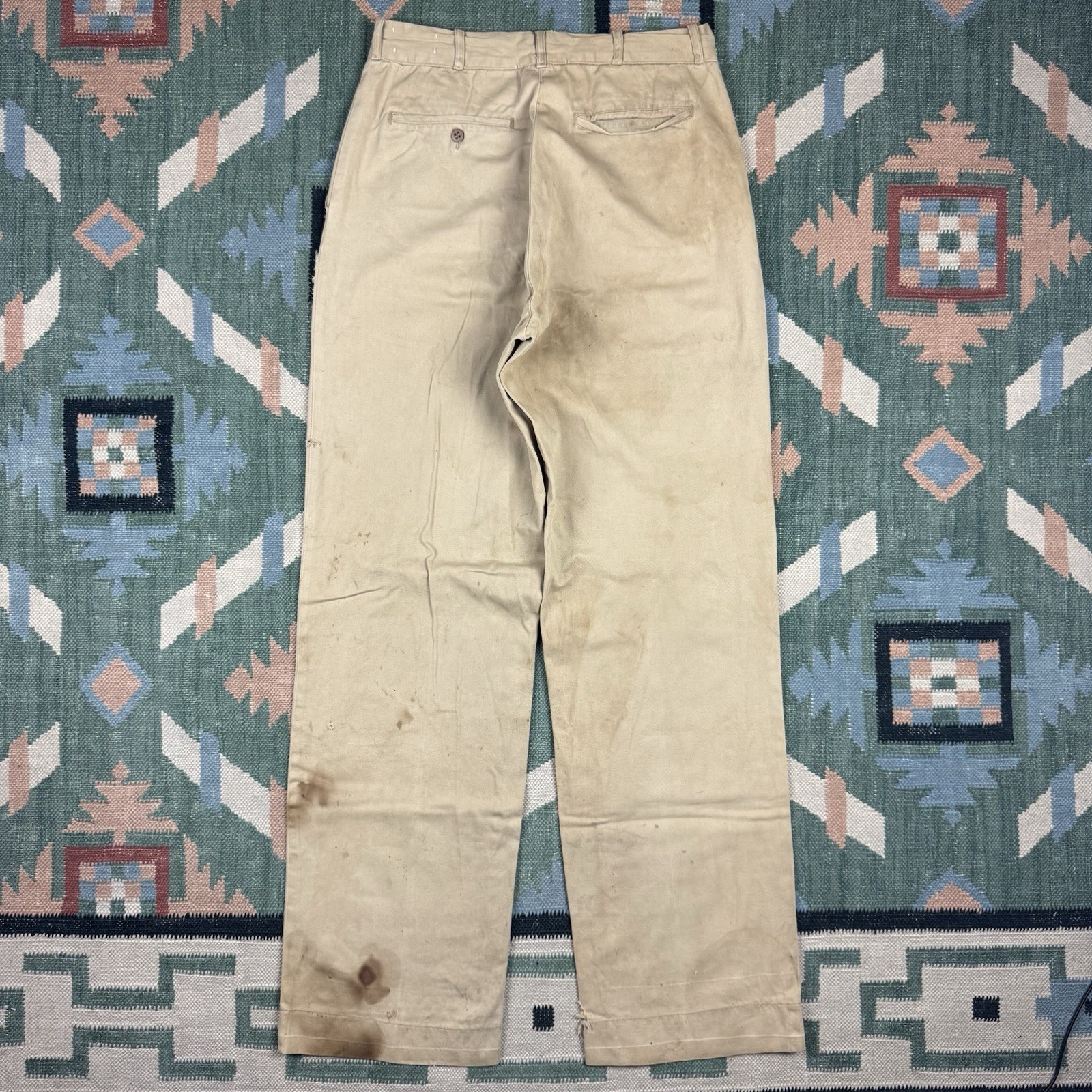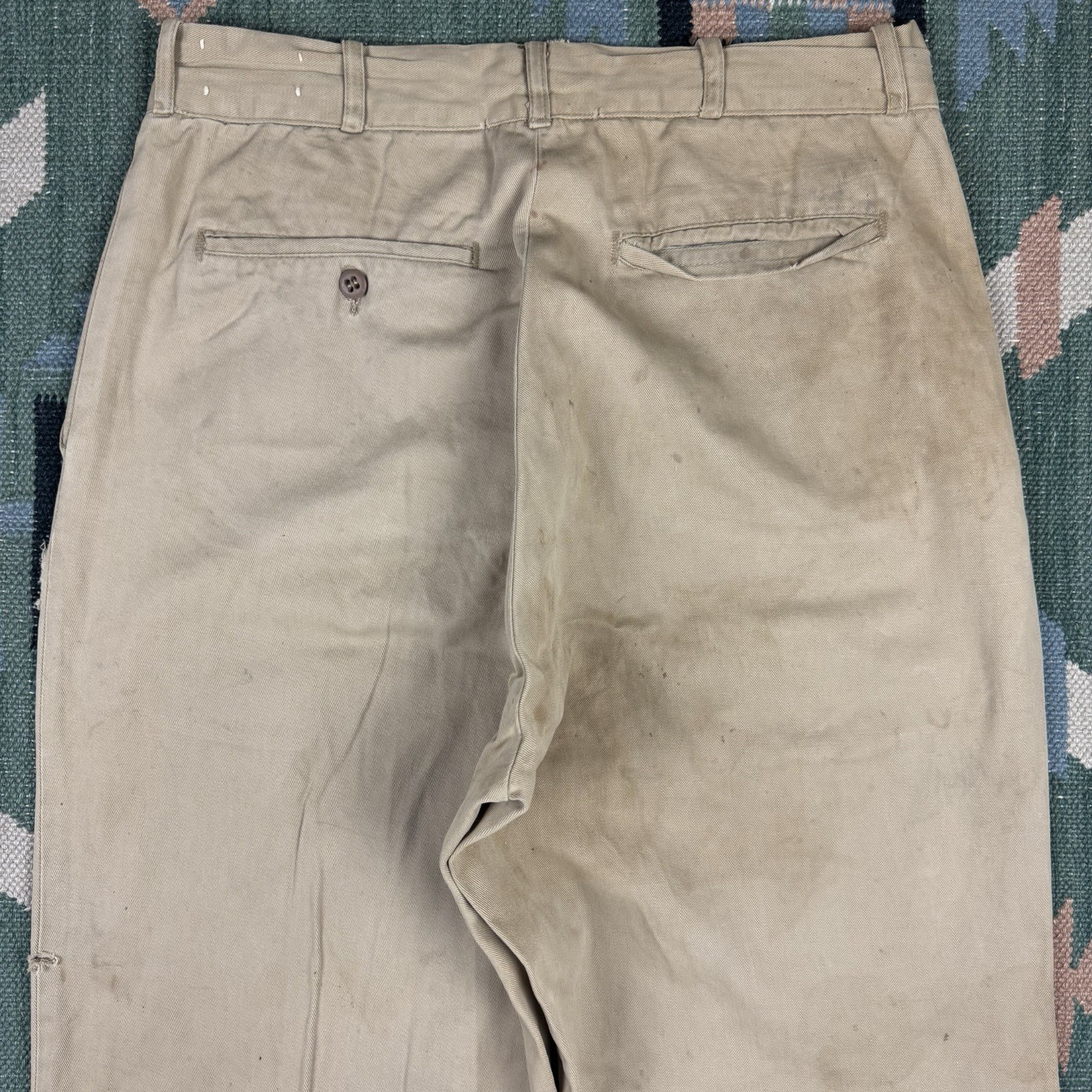 Vintage 50s Military Chino Pants Sanforized Khaki Men's 28x32 Workwear WW2