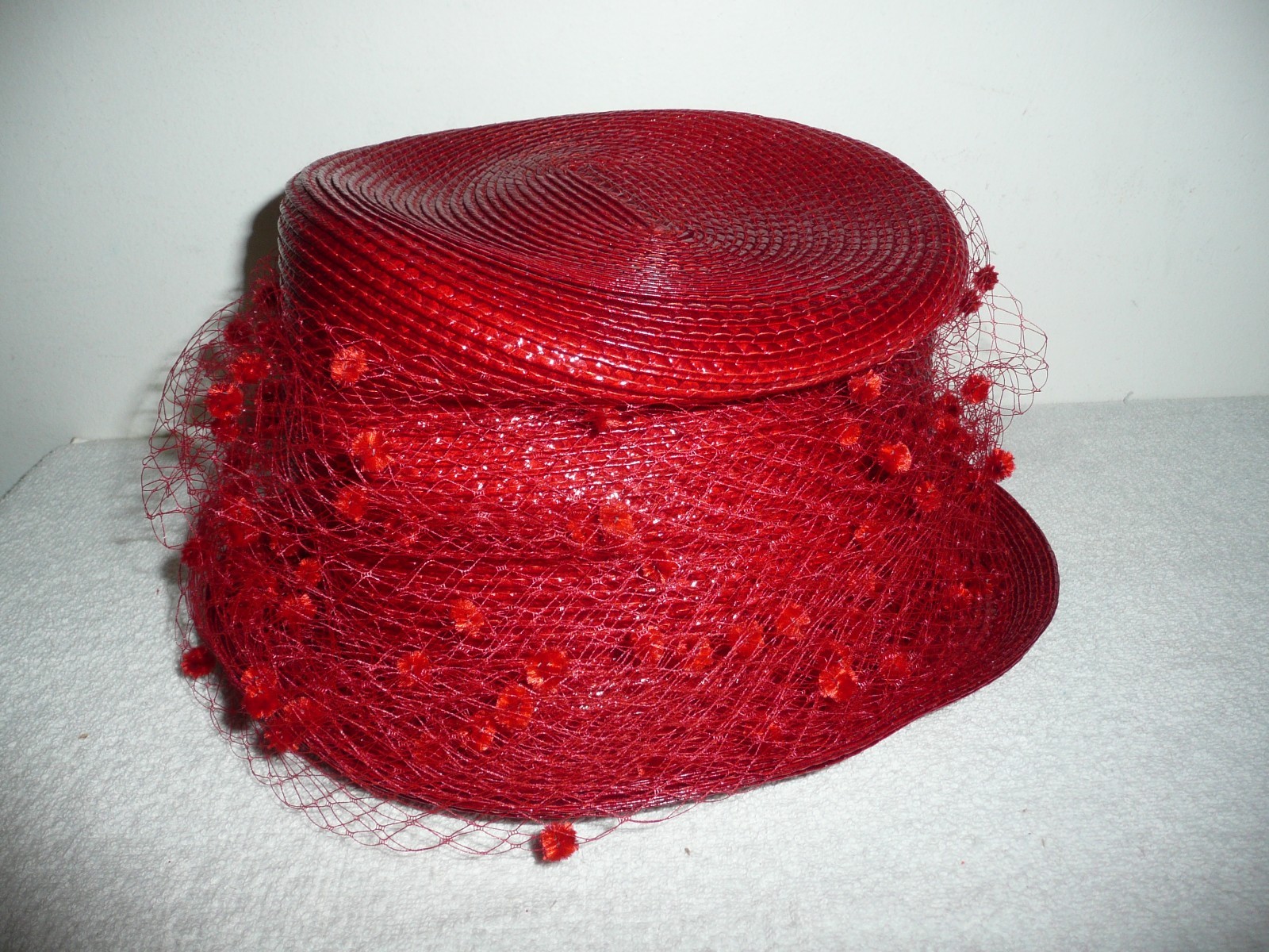 как выглядит VINTAGE b michael signature RED STRAW HAT WITH NETTING фото