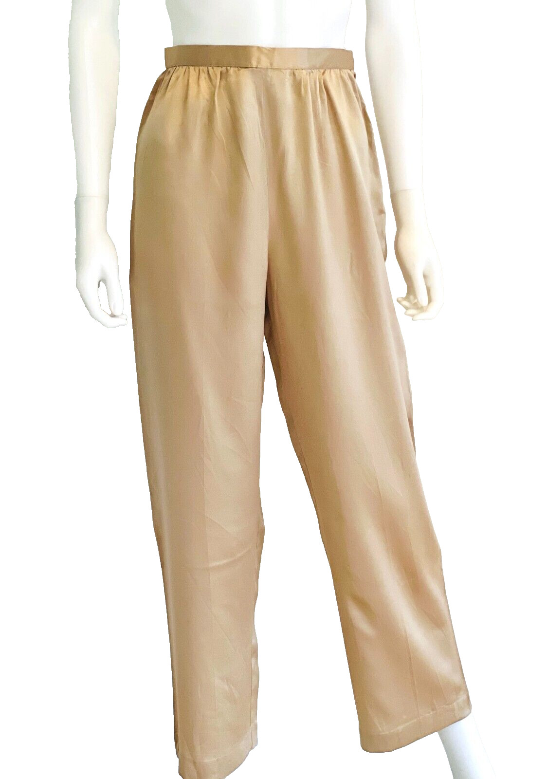 Vtg C1970s Designer Albert Capraro Gold Shimmering Satin Silk Pants Slacks, 6
