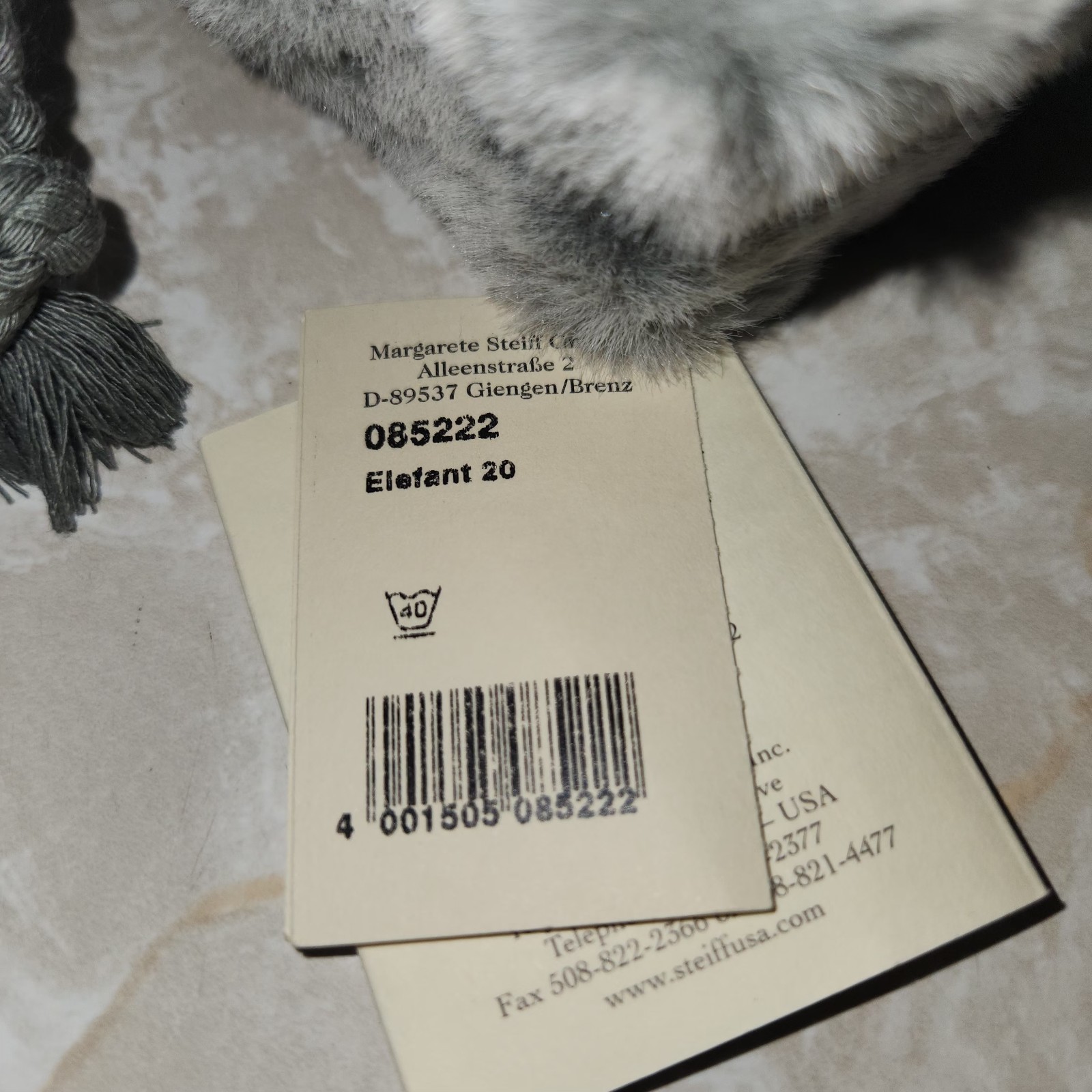 как выглядит Steiff Hucky Gray Elephant Plush Stuffed Animal Toy 08522 w/ Tags Button in Ear фото