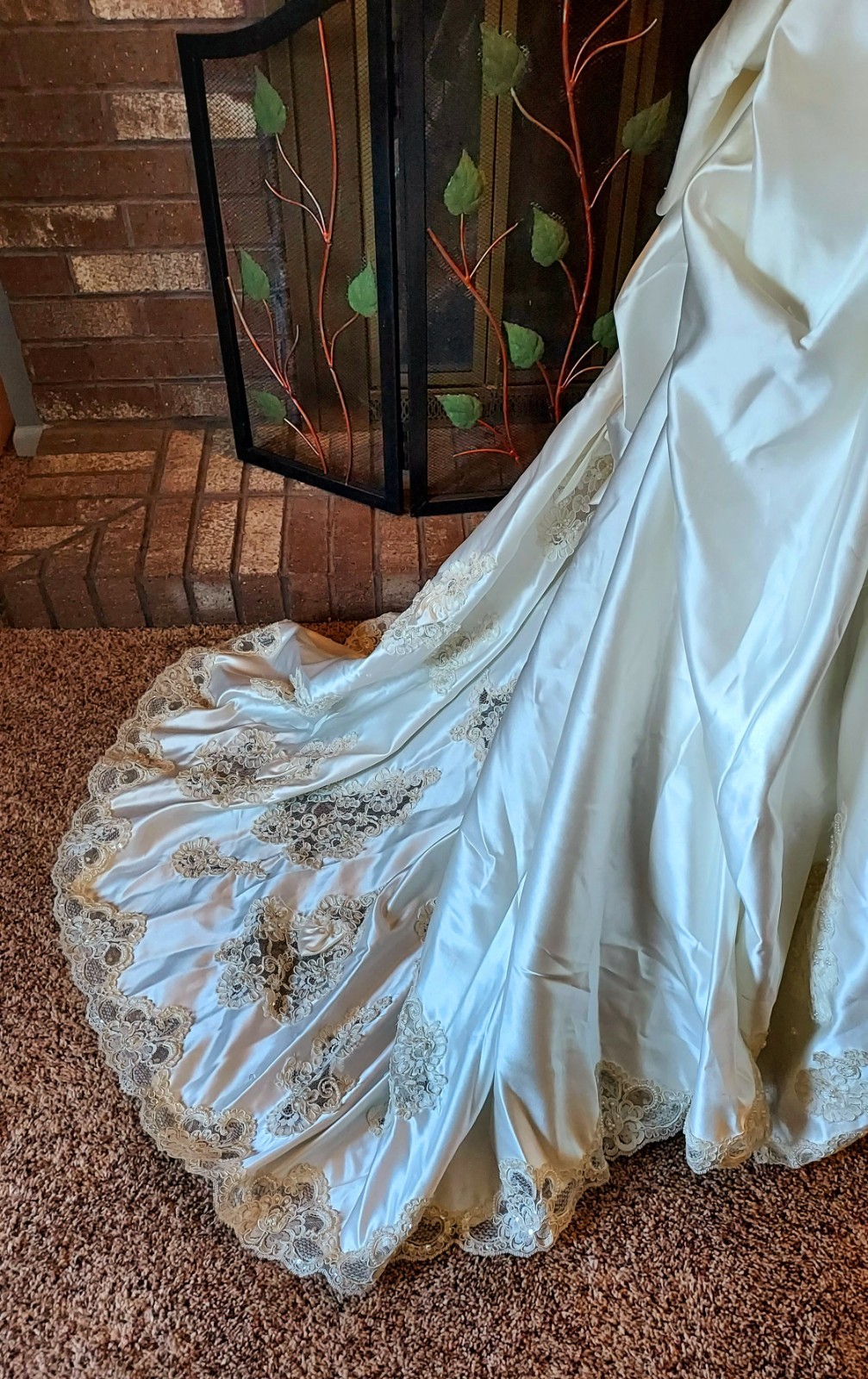 как выглядит Vintage 90s Alfred Angelo Wedding Dress Off White with Lace, Beading Train фото