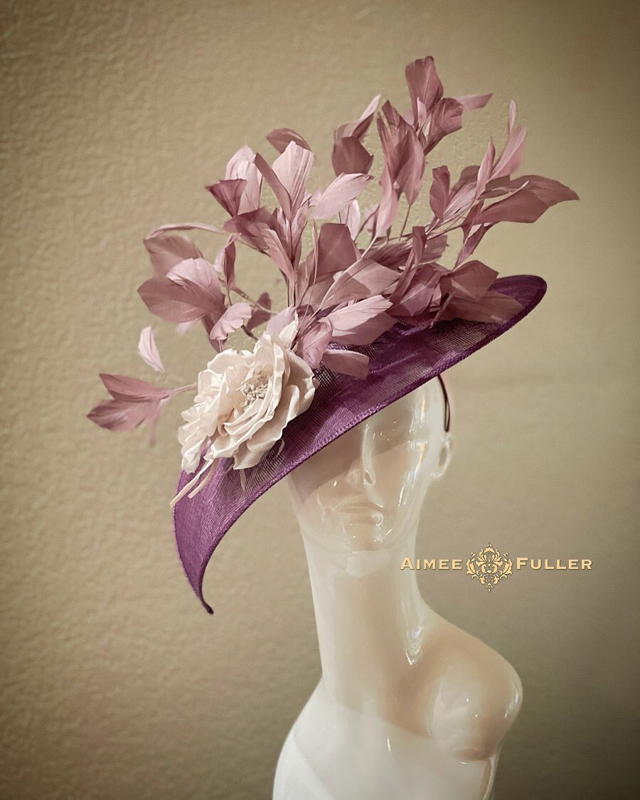 Aimee Fuller Kentucky Derby Hat Plum Purple Royal Ascot Fascinator Lavender