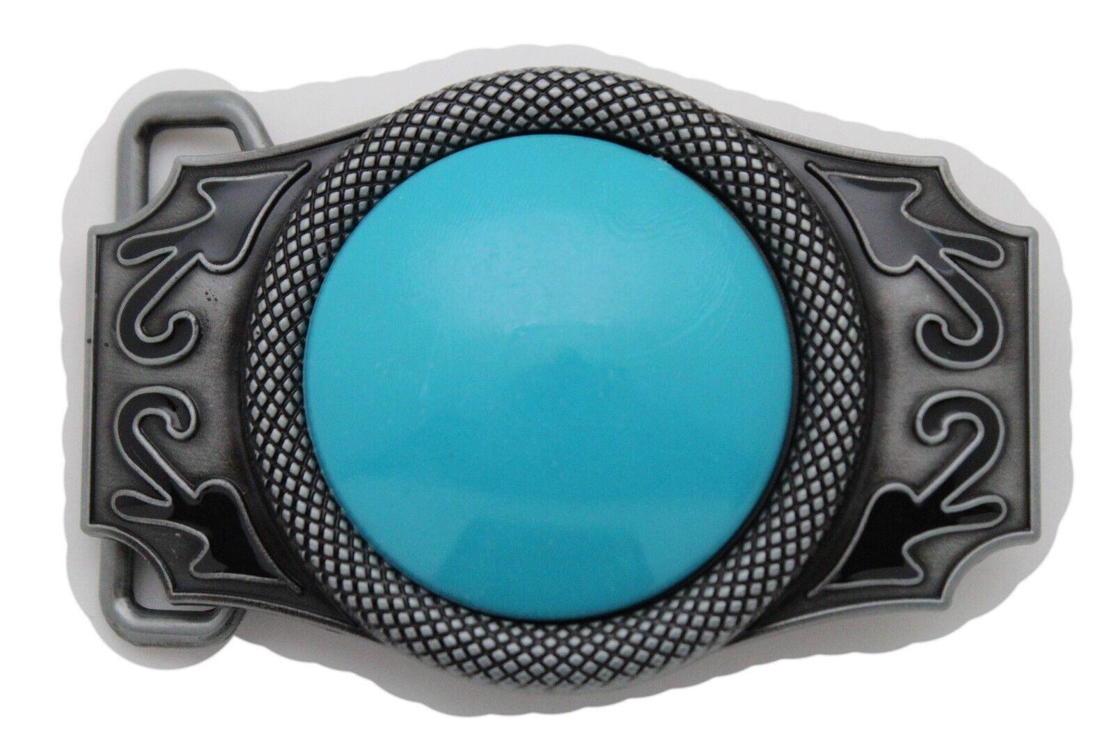 Men Women Western Fashion Belt Buckle Silver Metal Turquoise Blue Bead Festival