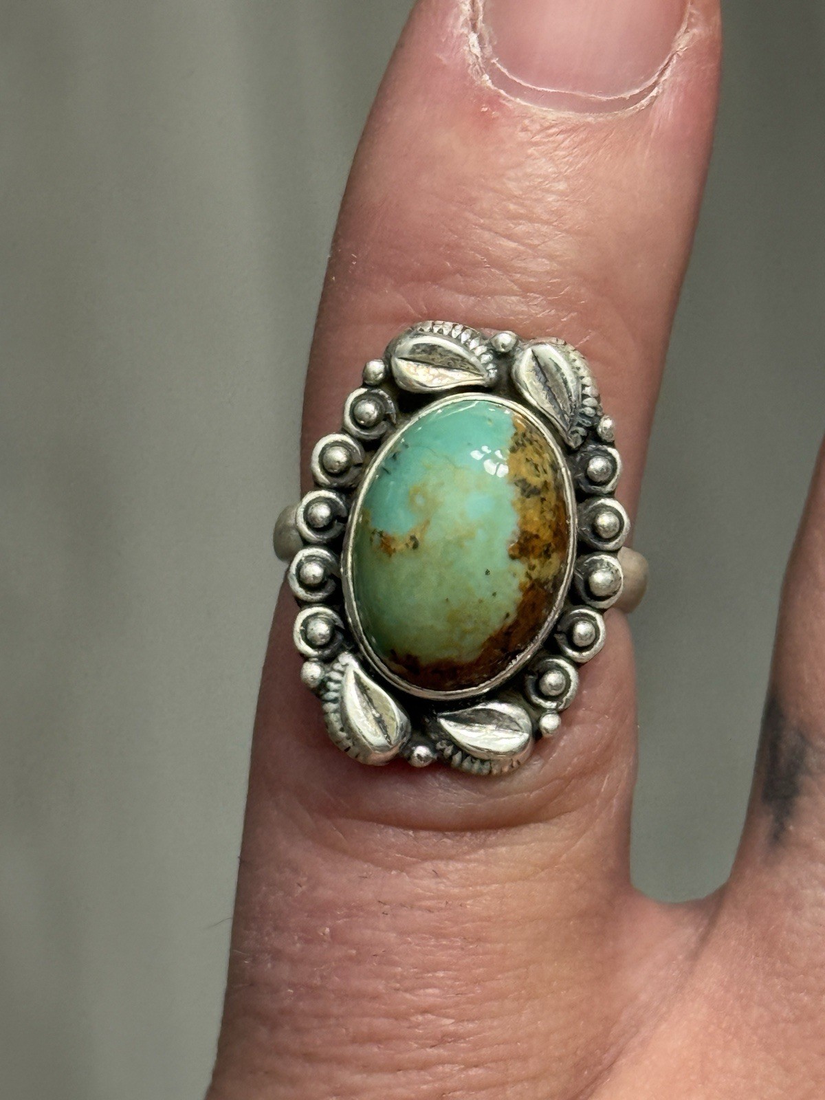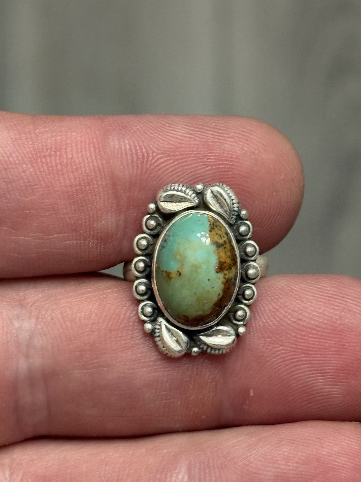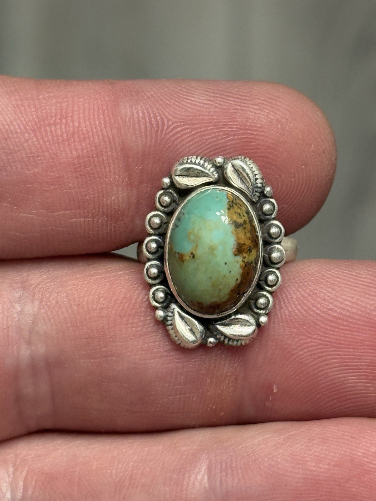 STERLING SILVER NATIVE AMERICAN SW TURQUOISE SINGLE STONE BAND RING SZ 6 .925
