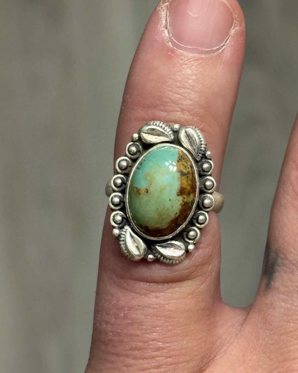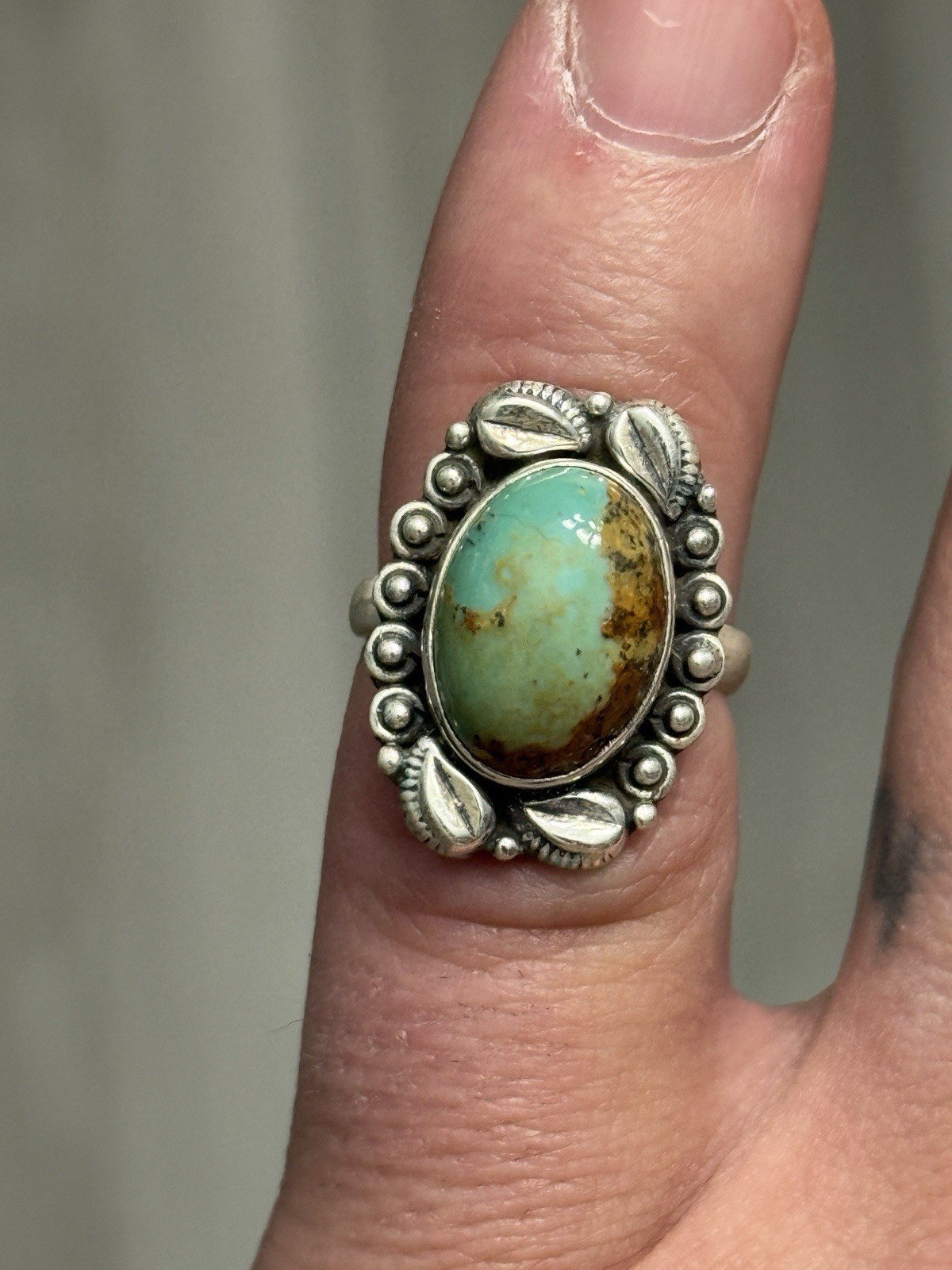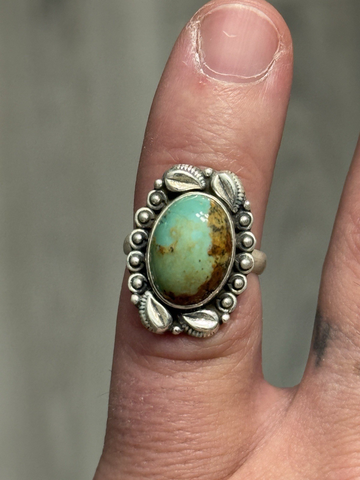 STERLING SILVER NATIVE AMERICAN SW TURQUOISE SINGLE STONE BAND RING SZ 6 .925